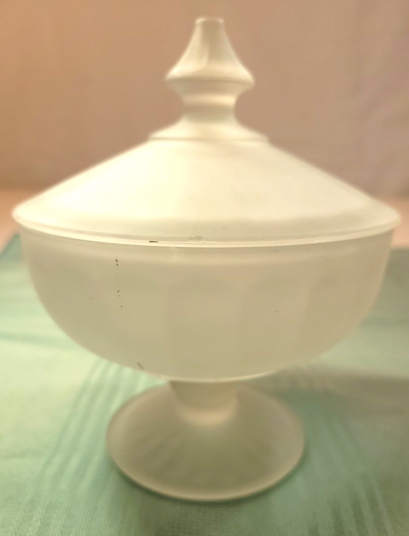 1960s Indiana Glass Frosted Satin Footed Candy Dish & Lid 6"