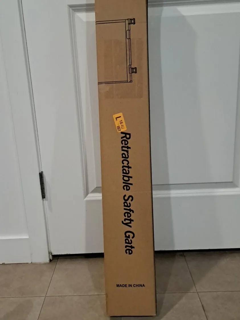 Selling a brand new retractable safety gate, still in its original box! It's perfect for keeping your little ones safe and sound. Easy to install and use, this gate provides a secure barrier wherever you need it. Great for stairs, doorways, and hallways. Has to screw into the wall. Box included