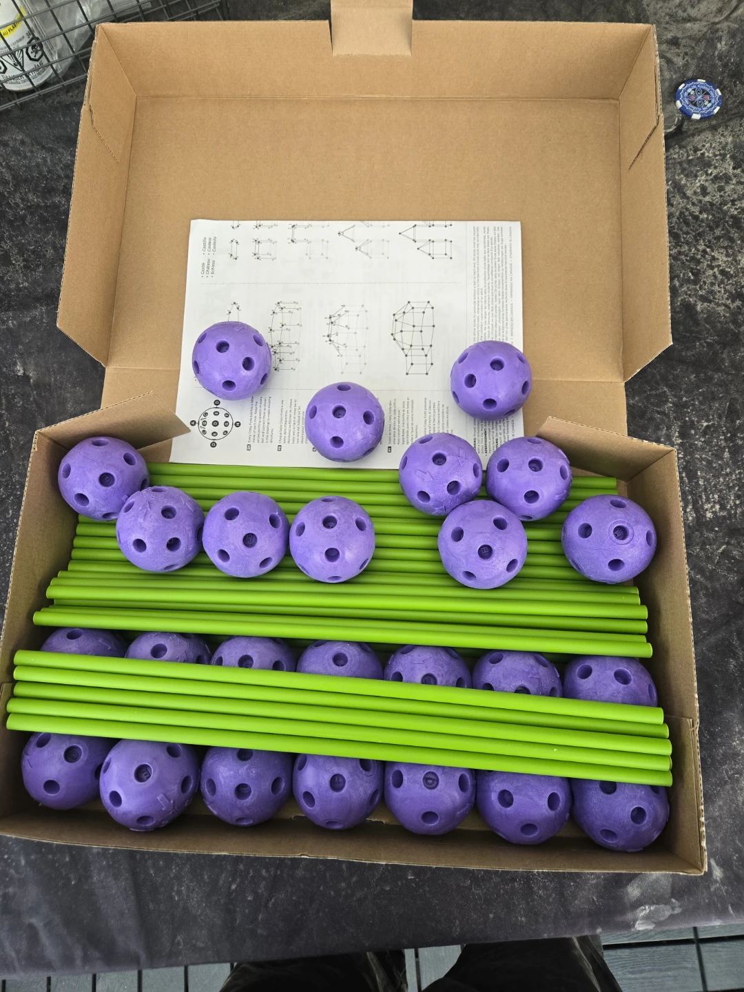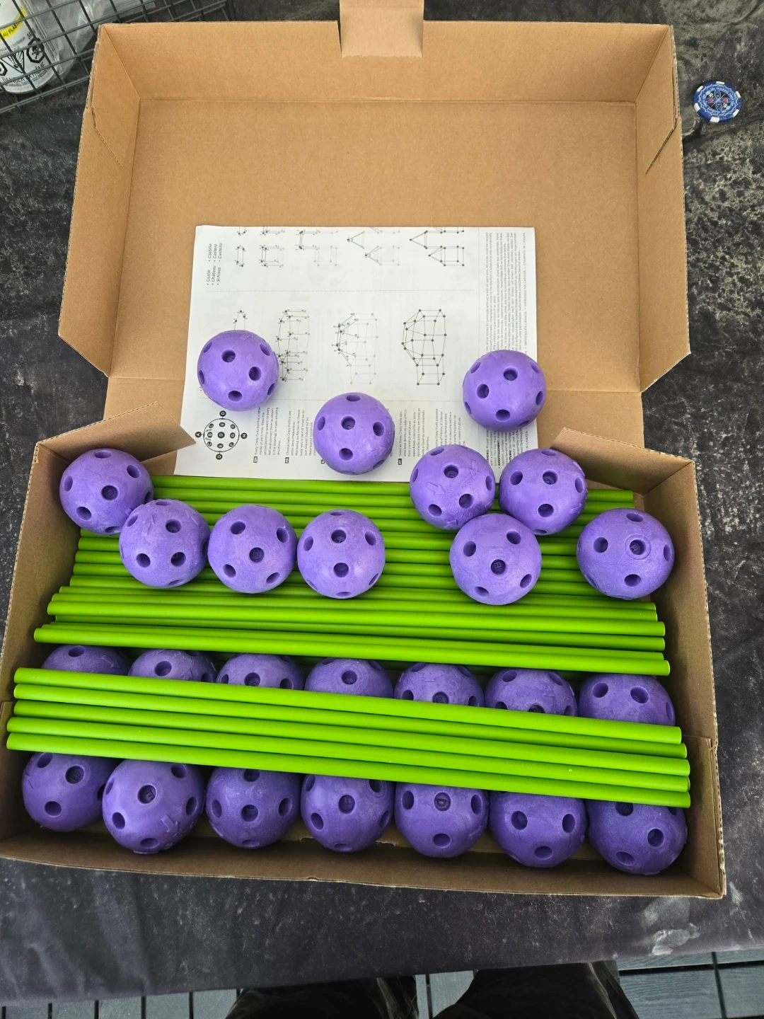 I confirmed 25 balls and 44 sticks COMPLETE .