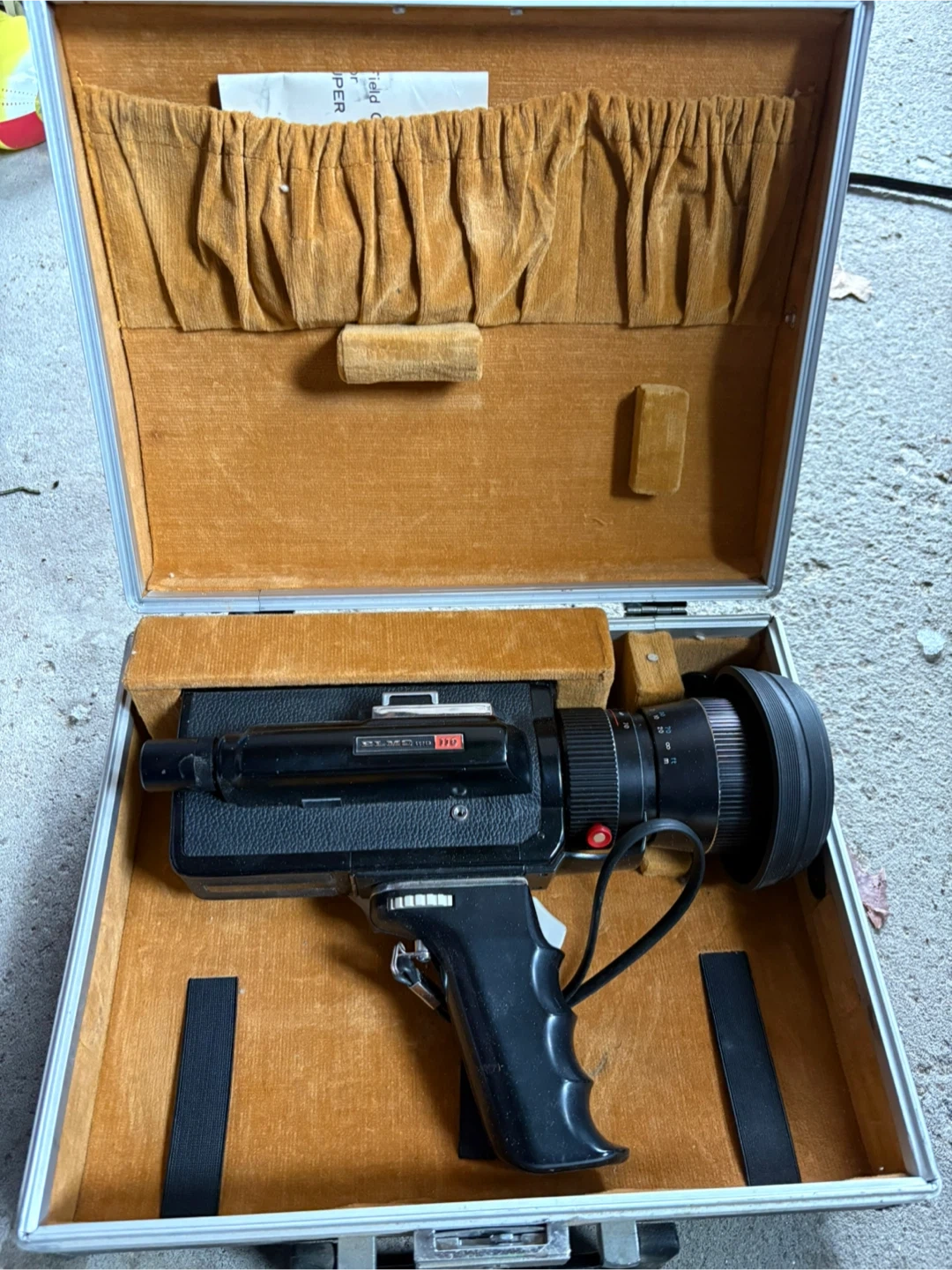 Selling an Elmo Super 8 Sound 600S camera, which comes in its original case. It looks like it's in good condition for its age. If you're a film enthusiast, this could be a great find!