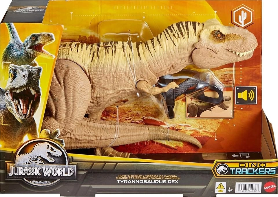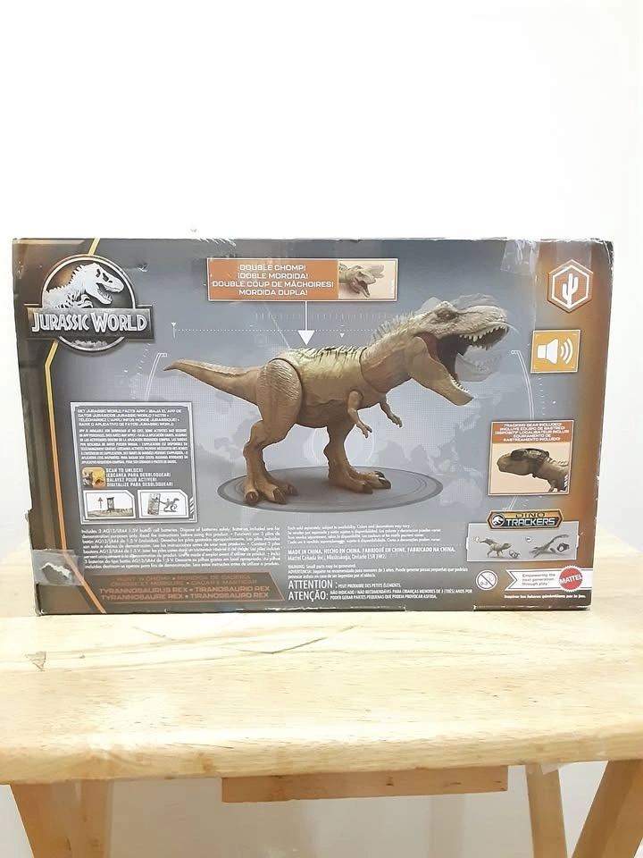 BRAND NEW Double Chomp! This Jurassic World T-rex dinosaur toy has a two-part head chomping action with sounds for exciting action play.