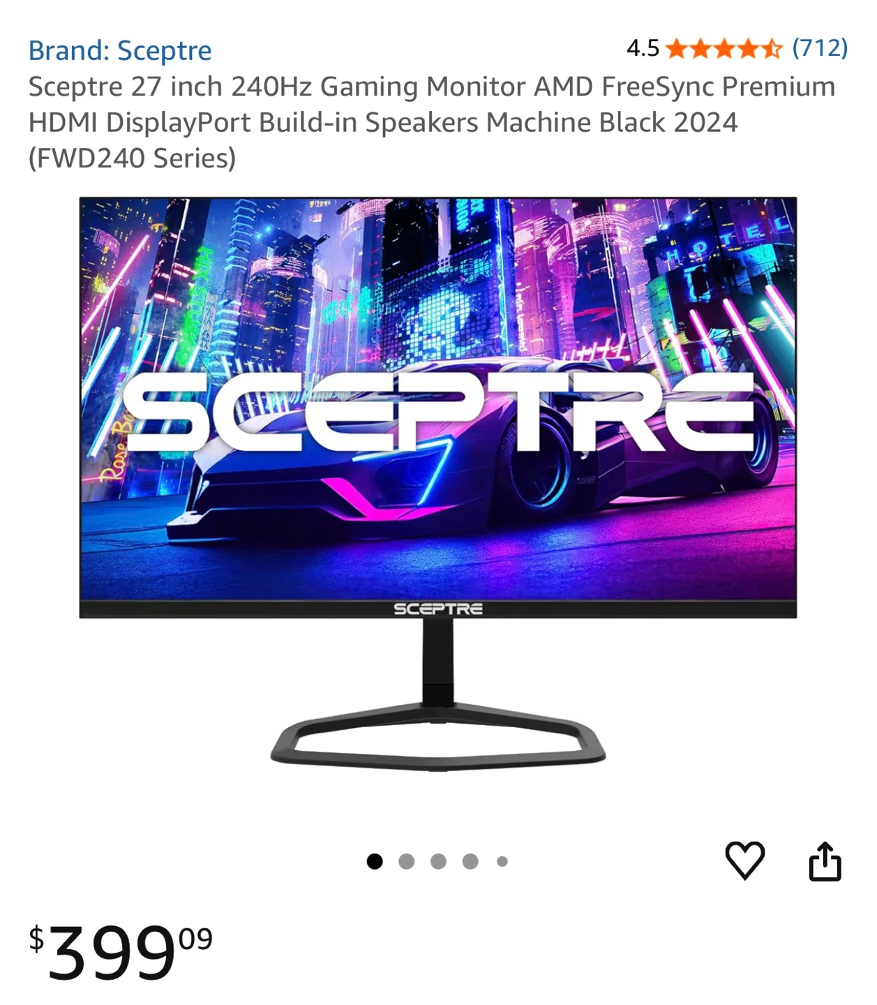 Selling a Sceptre 27 inch 240Hz Gaming Monitor AMD FreeSync Premium HDMI DisplayPort Build-in Speakers Machine Black 2024 (FWD240 Series). It's in like new condition. This edgeless gaming monitor has a 240Hz refresh rate for smooth gameplay. Originally bought for $399.09!