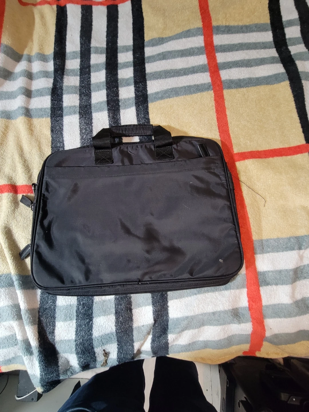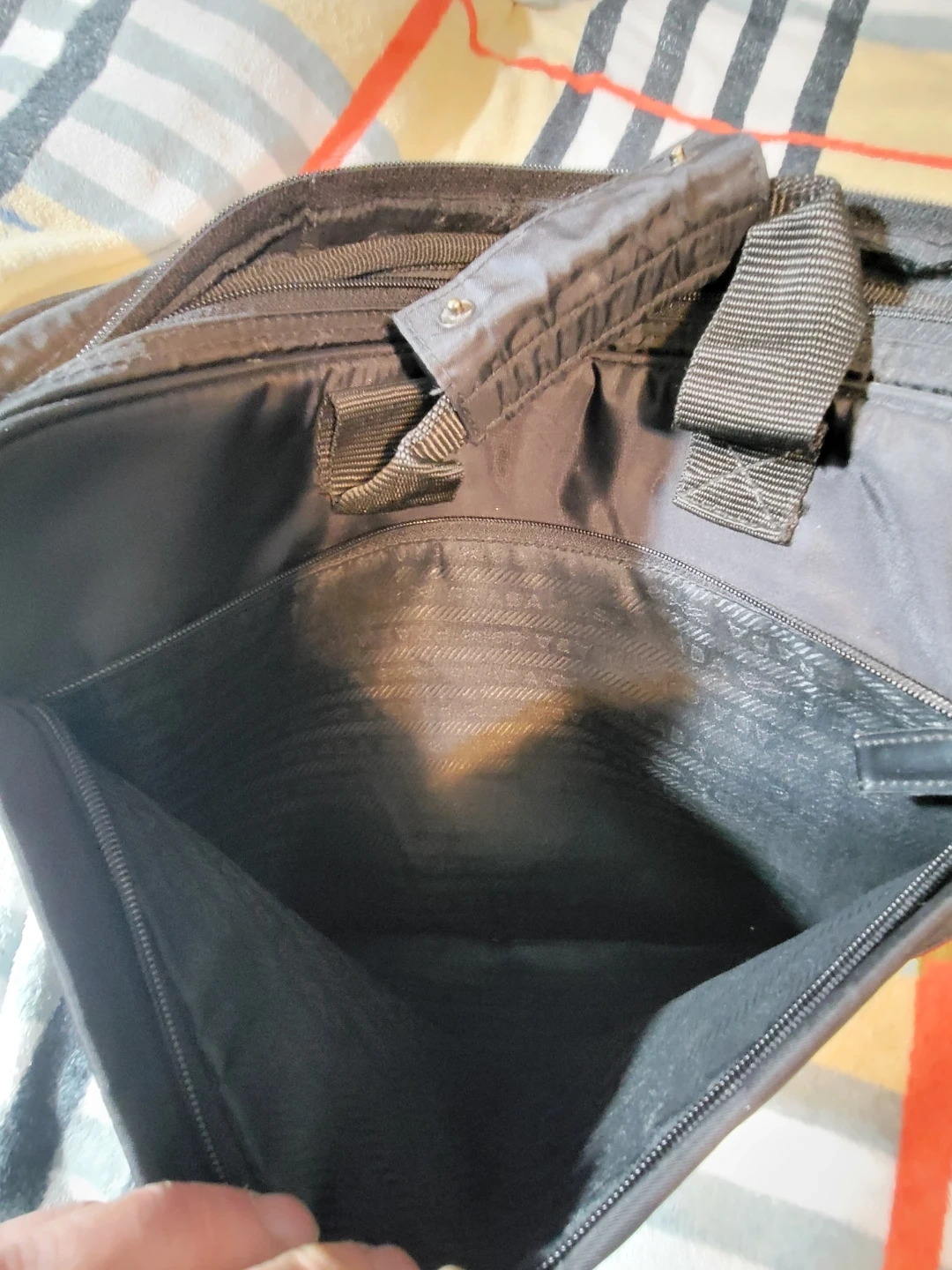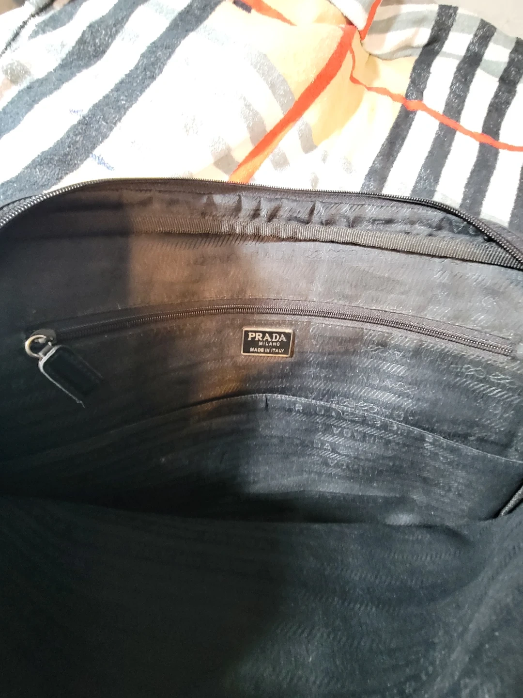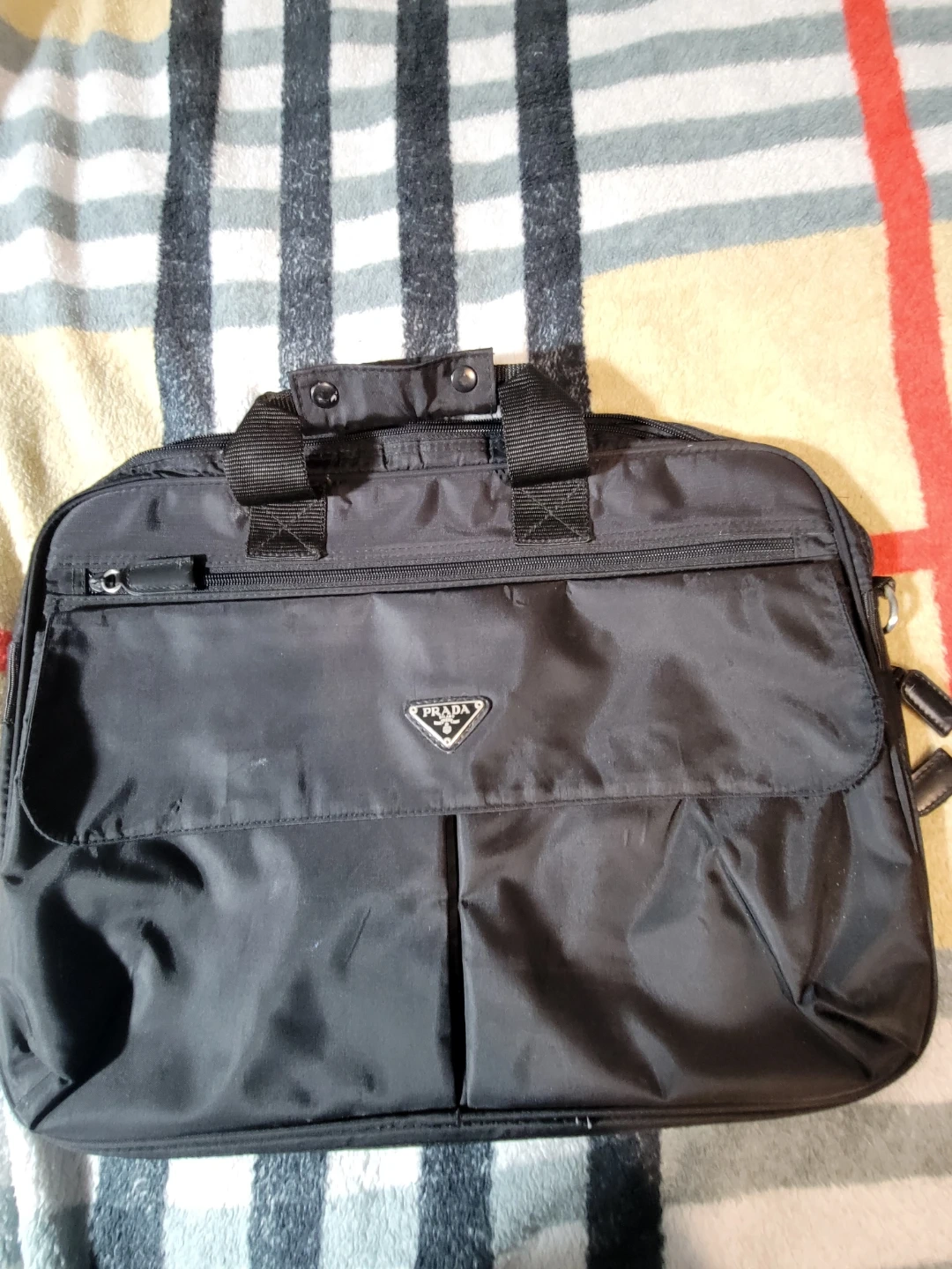 Selling a Prada briefcase in black. It's in great condition and perfect for carrying your laptop and documents. The interior lining features the Prada logo. It's a stylish and functional bag for work or travel!