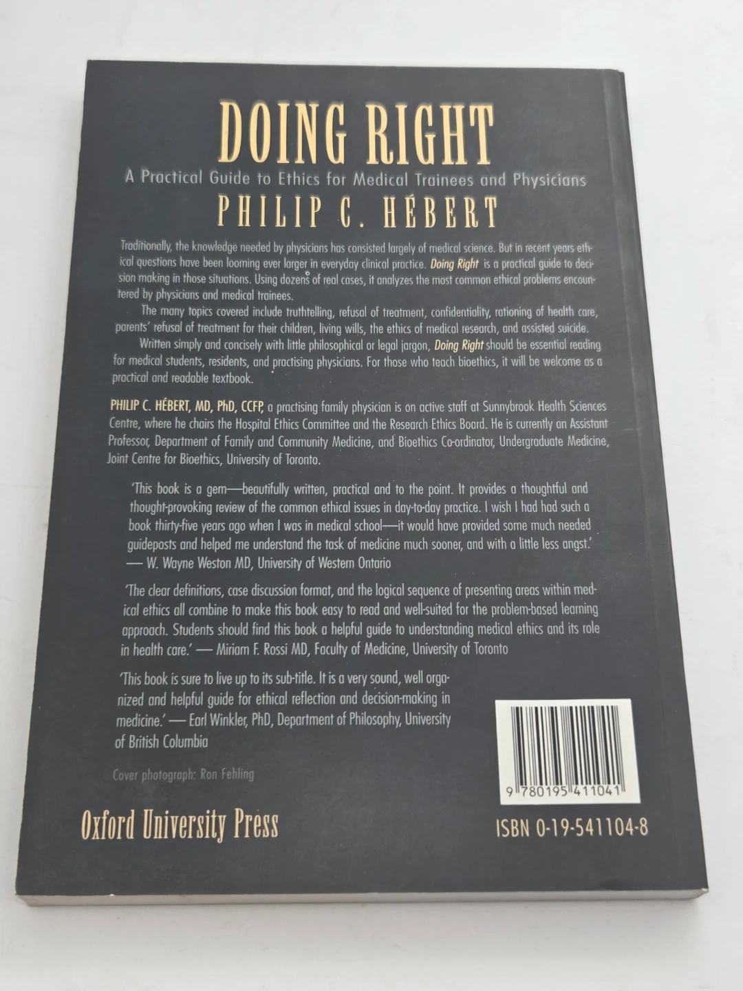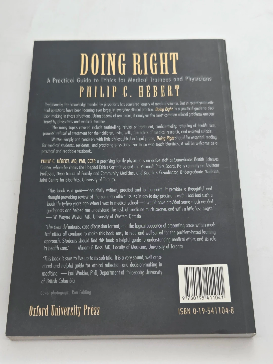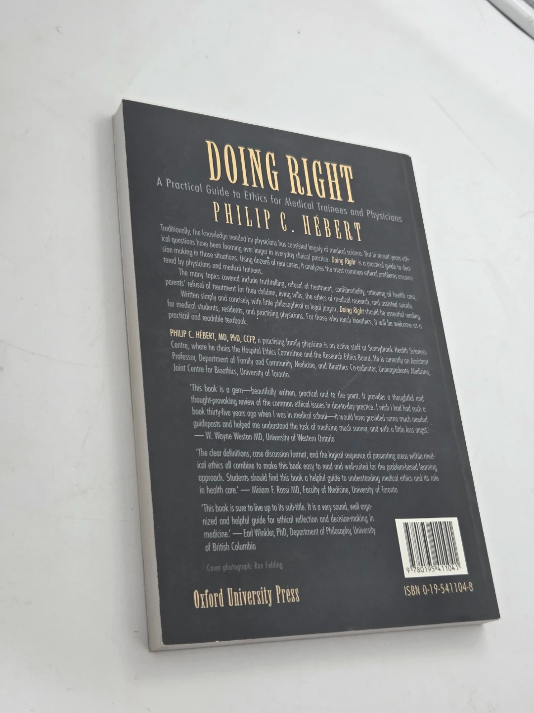 Selling the book "Doing Right: A Practical Guide to Ethics for Medical Trainees and Physicians" by Philip C. Hébert. It's a helpful resource for anyone in the medical field looking to explore ethical considerations in their practice