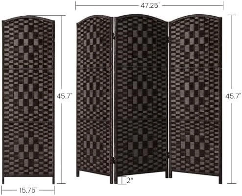 This 4ft tall room divider features three 16" wide panels. It provides extra privacy and helps create a comfortable space. The dual two-way hinges allow for easy folding in either direction. Constructed from high-quality solid wood and woven rattan, it is both durable and stable. The lightweight design makes it easy to move and store when not in use. No assembly is required, so you can use it right out of the box.