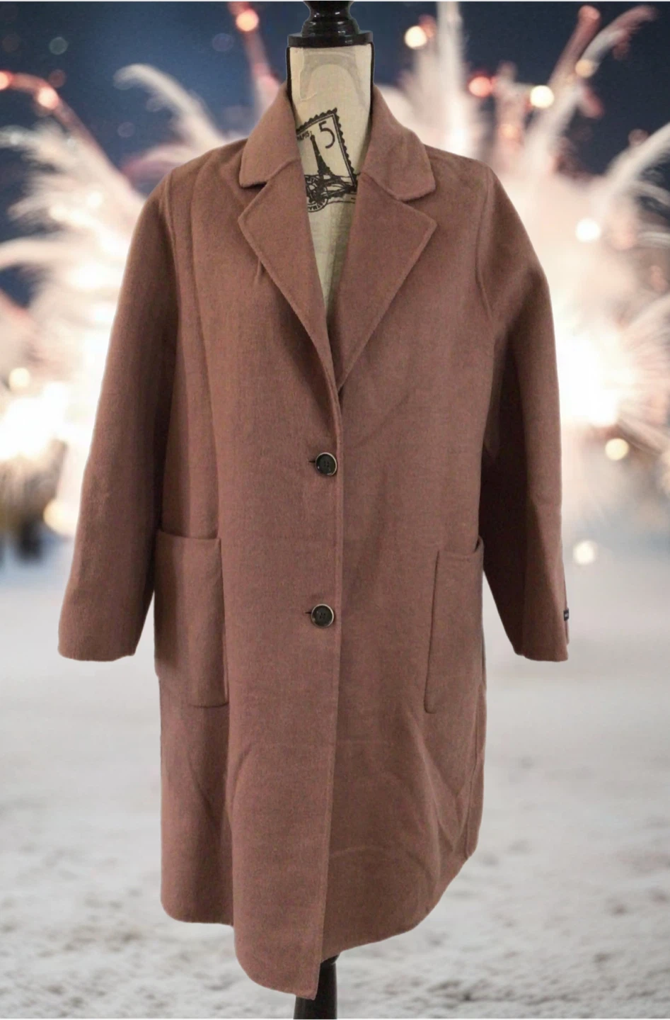 Here's a lovely brown coat that's perfect for cooler weather! It's a wool blend and features a classic design with pockets. Great for adding a touch of elegance to your wardrobe!