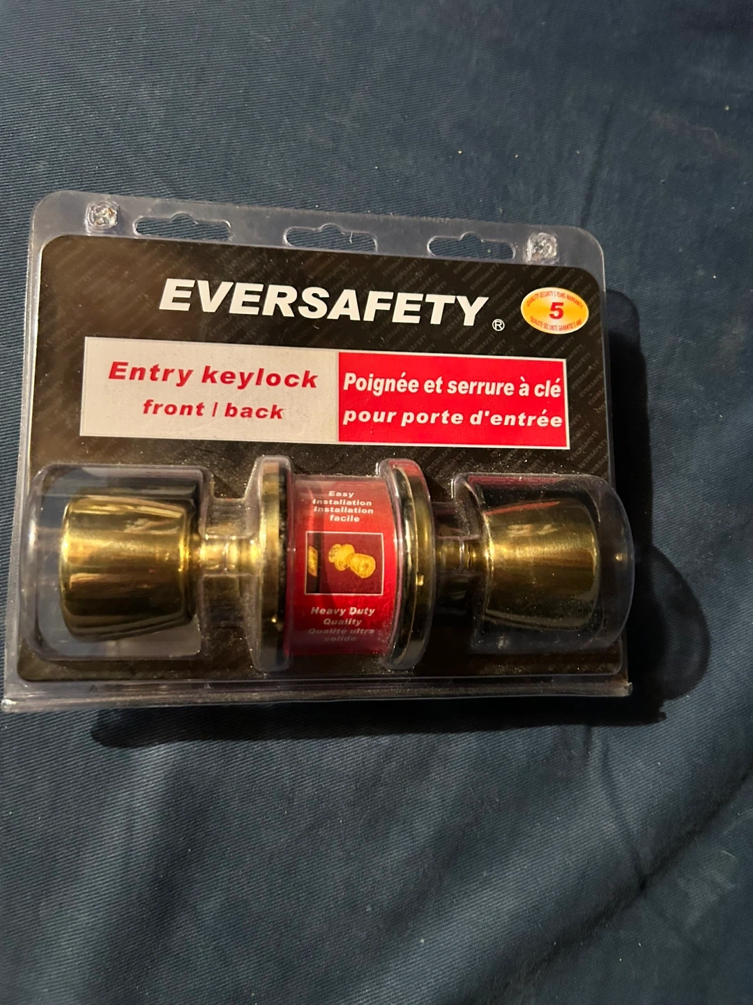 Selling a brand new Eversafety entry keylock, still in its original packaging! It's a heavy-duty, quality lock designed for easy installation on front or back doors.