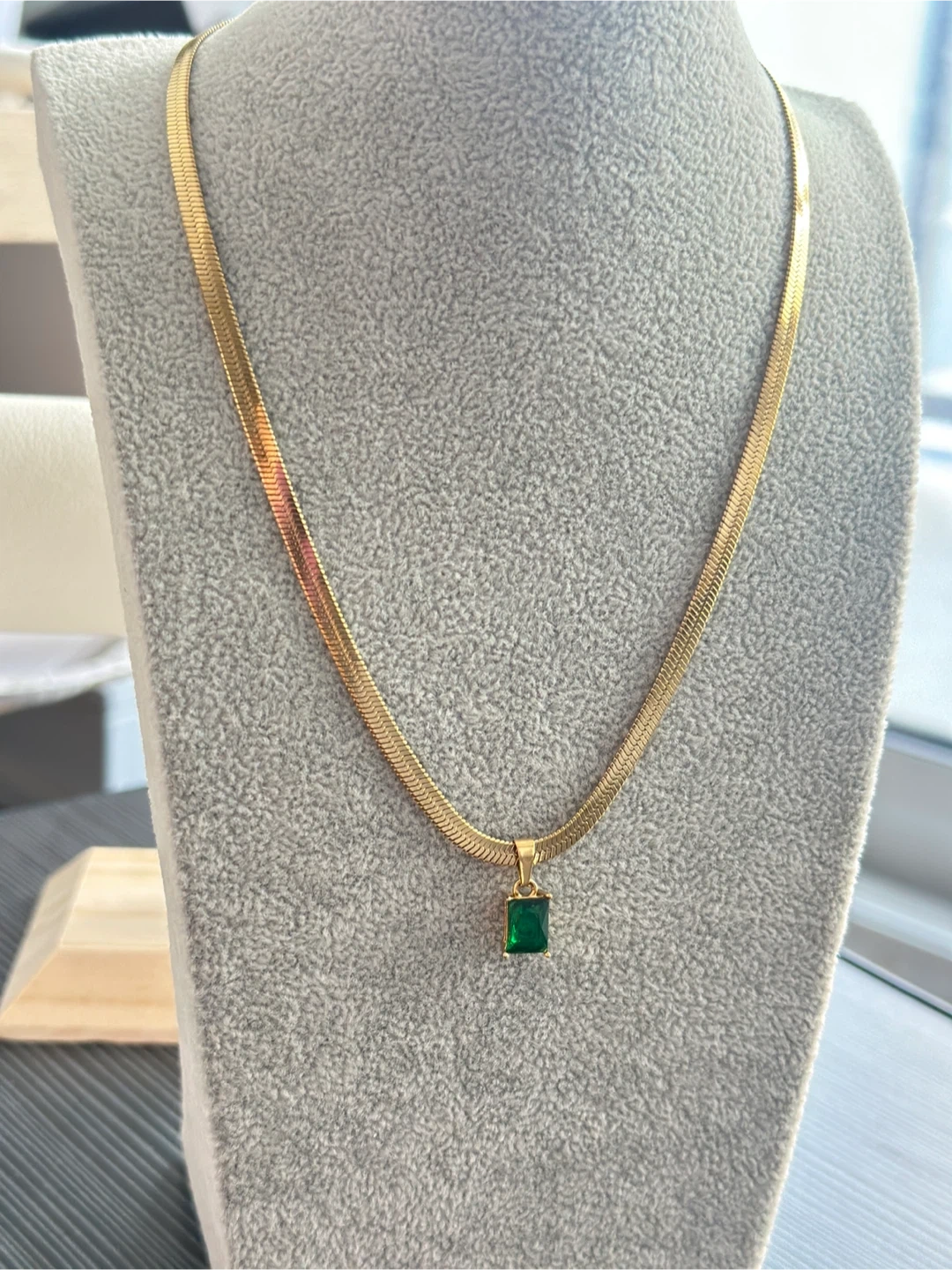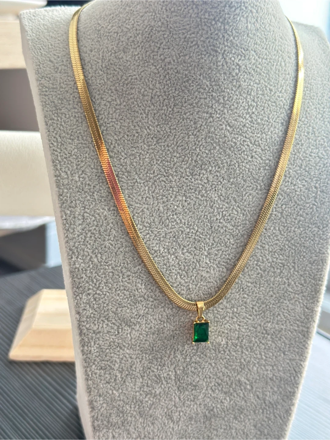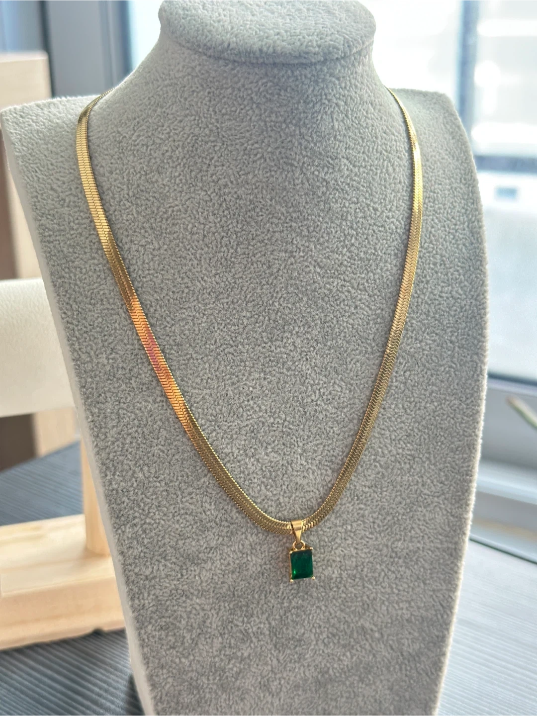 Selling a beautiful gold herringbone chain necklace! It features a lovely emerald pendant that adds a touch of elegance.