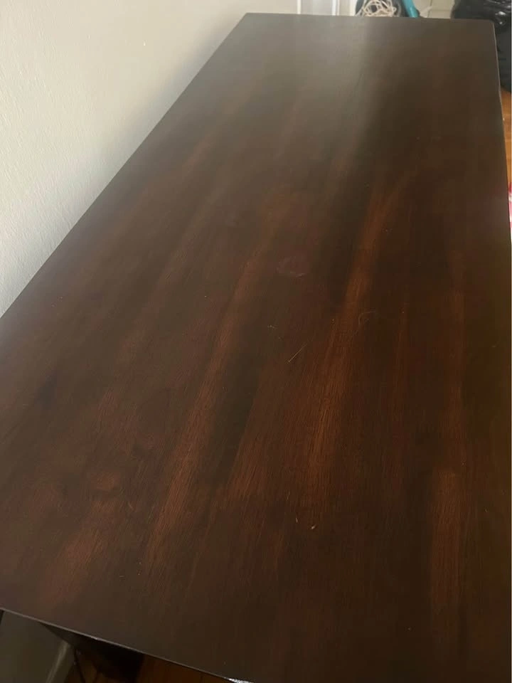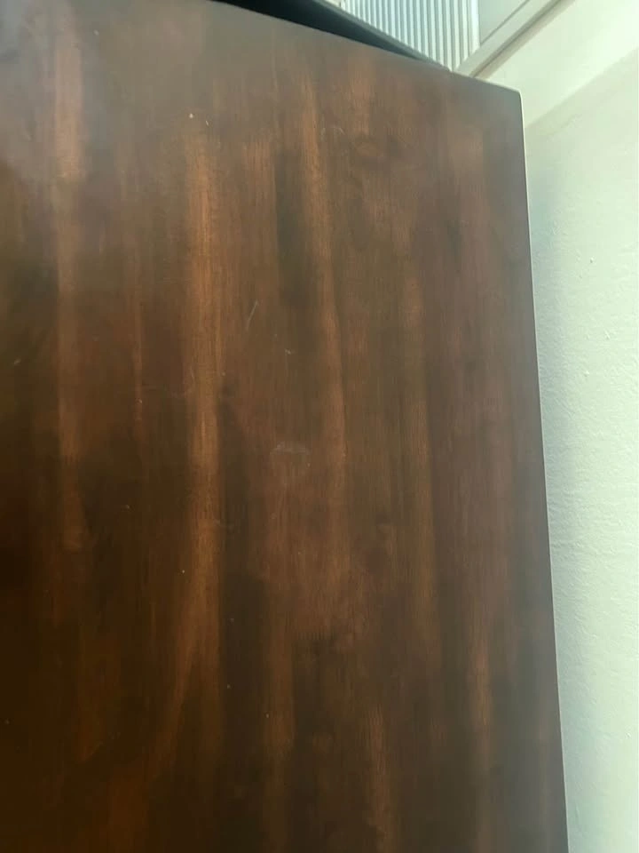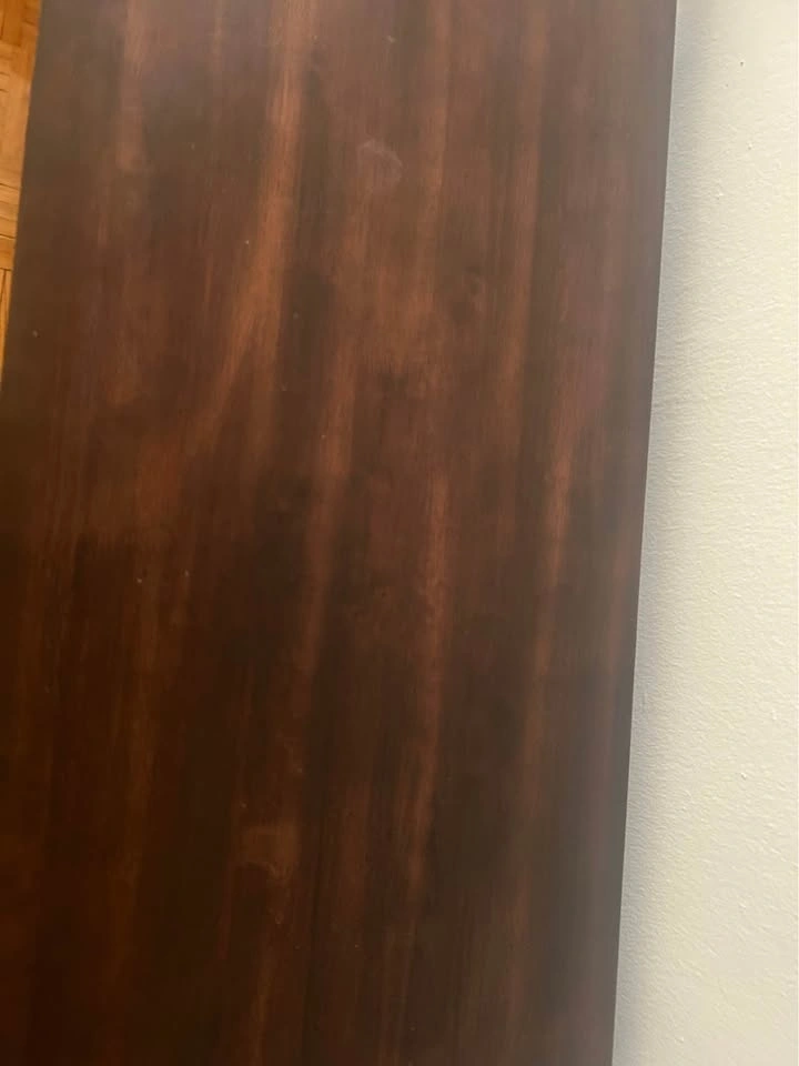A small wooden part of one back leg has come off (not visible from front), and there are some light stains on the surface (hard to see normally) - visible in the photos.