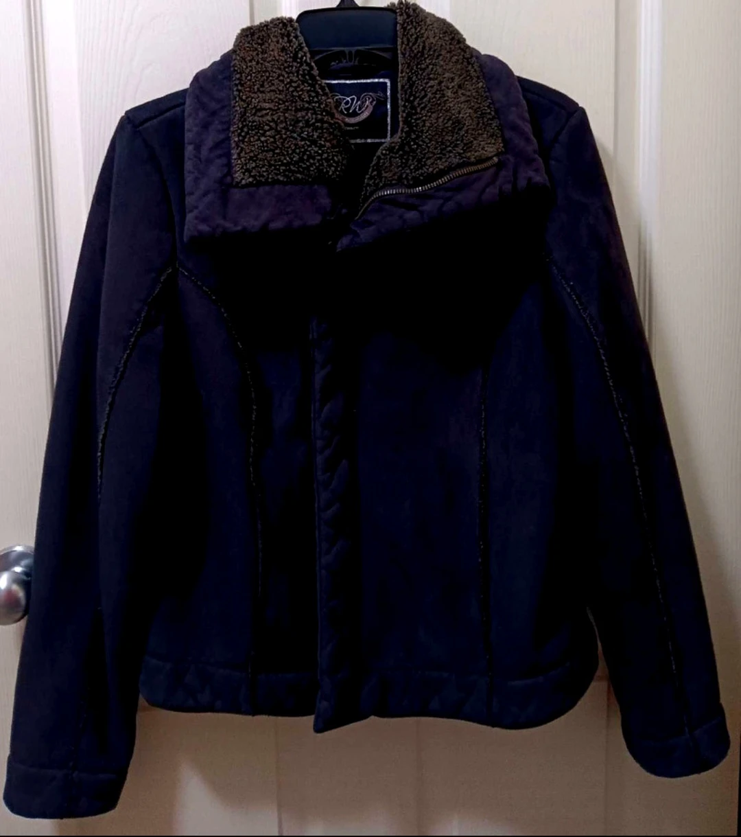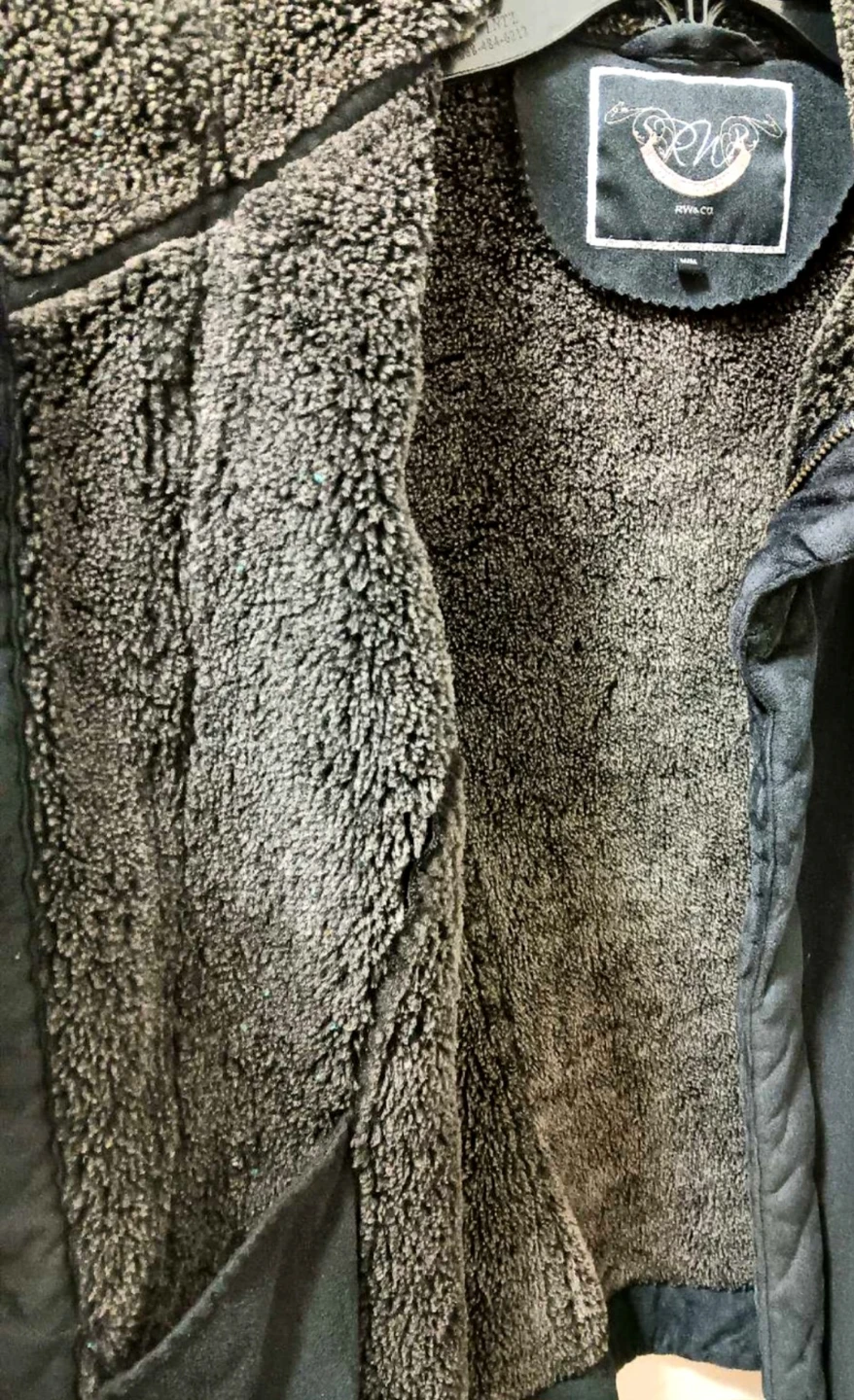 Snuggle up in style with this women's Suede jacket, perfect for adding a touch of class to any outfit with its faux-suede exterior and cozy faux-fur trim! This jacket has been kept in good condition, ready to keep you warm and fashionable.