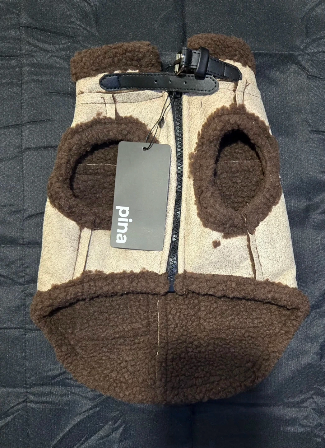 Keep your furry friend warm and stylish with this Pina dog jacket! It features a cozy sherpa lining and a buckle closure for a secure fit. Perfect for those chilly walks!
