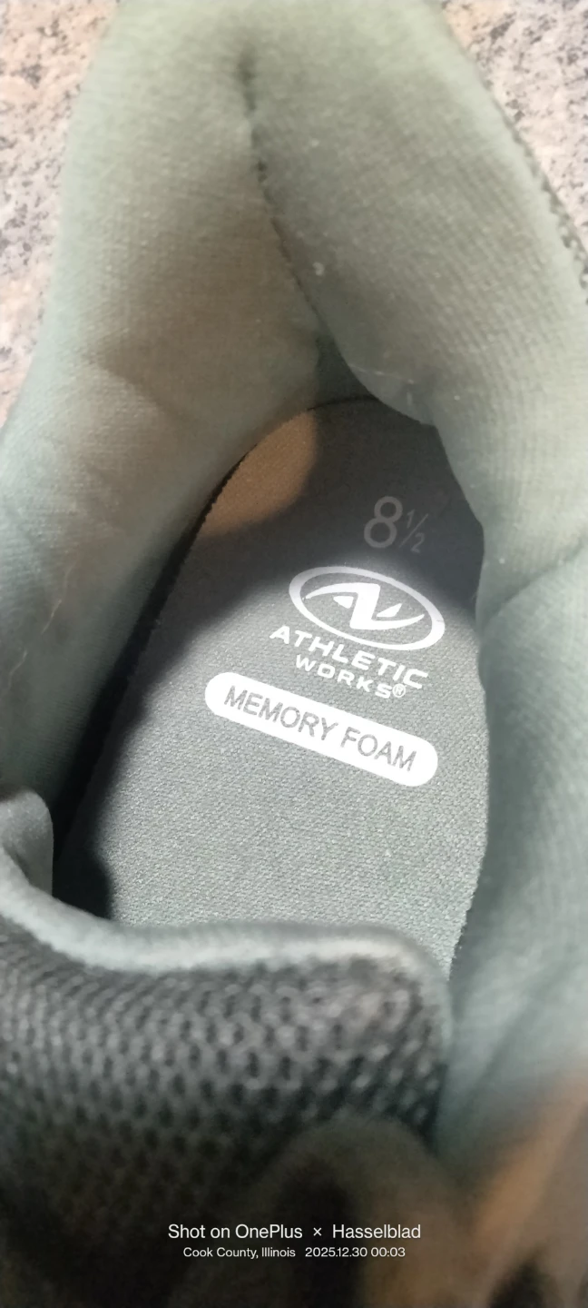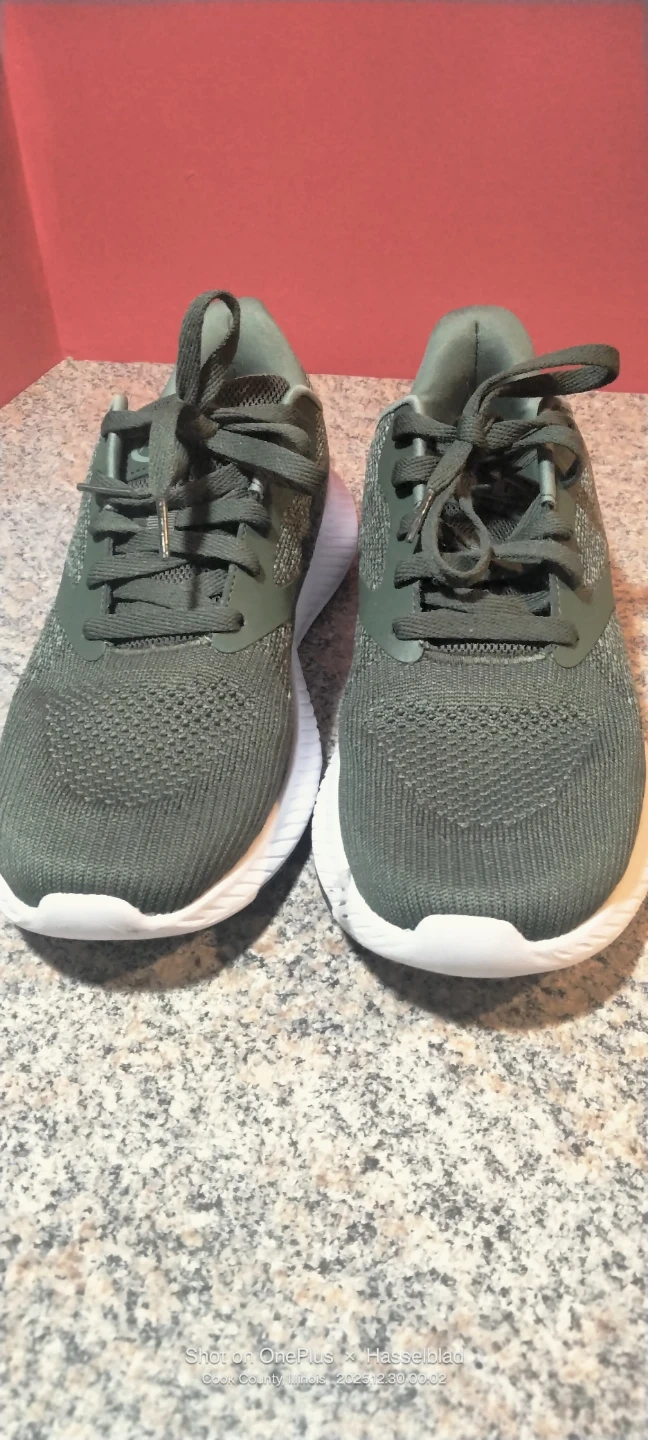Athletic Works shoes with memory foam in size 8.5.They're new without a box or tag.The color is a nice, neutral green that goes with everything. Perfect for walking jogging or everyday wear!