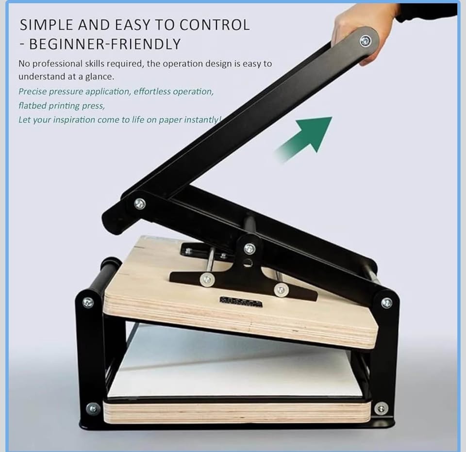 Hand Lever Press Machine, Linocut Press Machine, Manual Lever Printing Press for Linoleum Blocks with Felt Pad (fits blocks up to 0.984 in thick, A4, black)