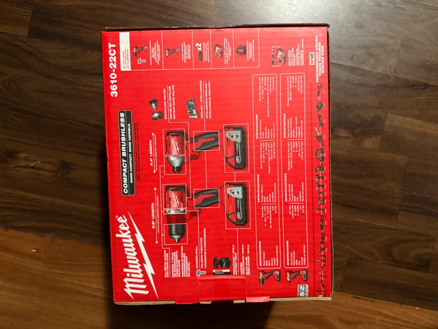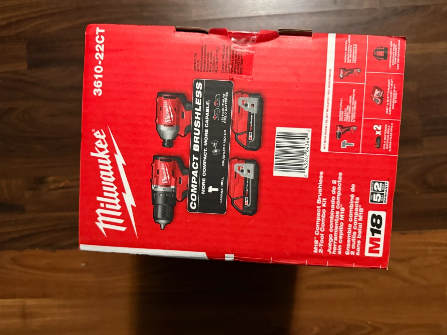 Selling a Milwaukee M18 Compact Brushless 2-Tool Combo Kit. It includes a hammer drill and a brushless motor. It also comes with two REDLITHIUM CP2.0 batteries. The kit is model 3610-22CT and is compatible with all M18 batteries. The box is included