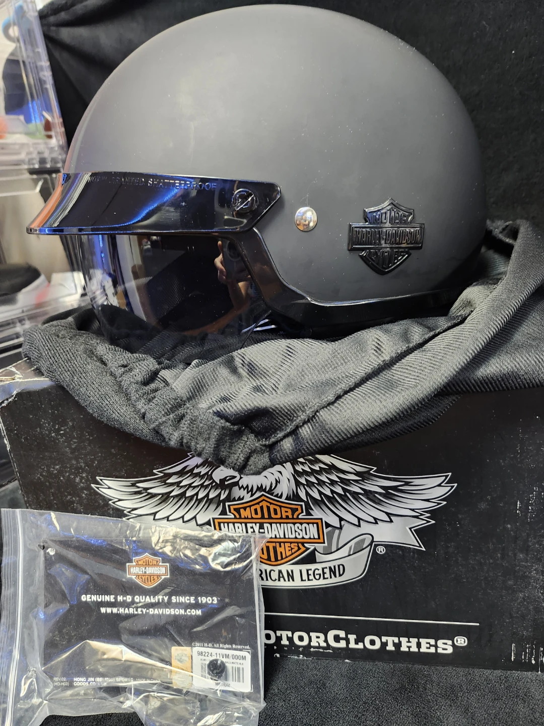 Selling a Harley-Davidson helmet! It features a shatterproof visor and comes with its original box and accessories. A great piece for any rider!