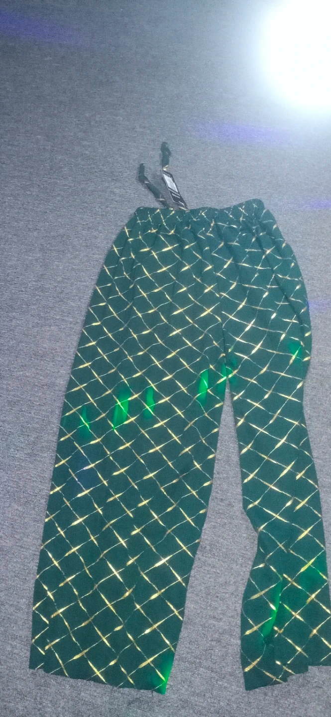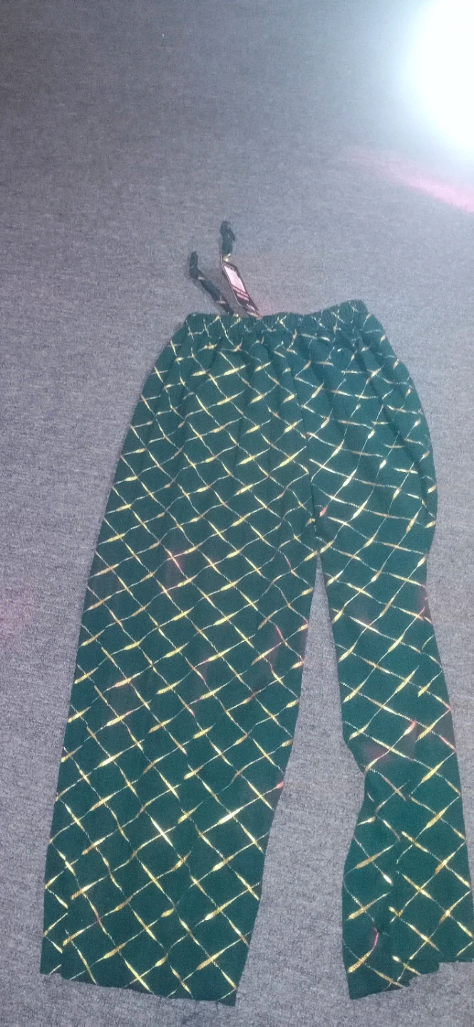 Purchased in Panama, these wide-leg dark green and gold pants will definitely add some spark to your life. If you love to wear colorful ouftits they will be the true fit for you. They are new and have never been worn. The tag is still attached.