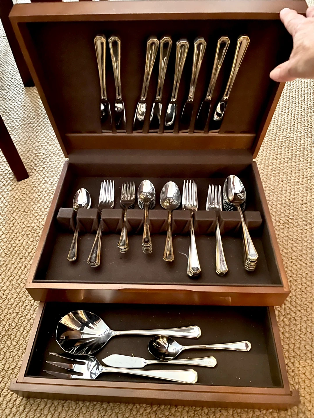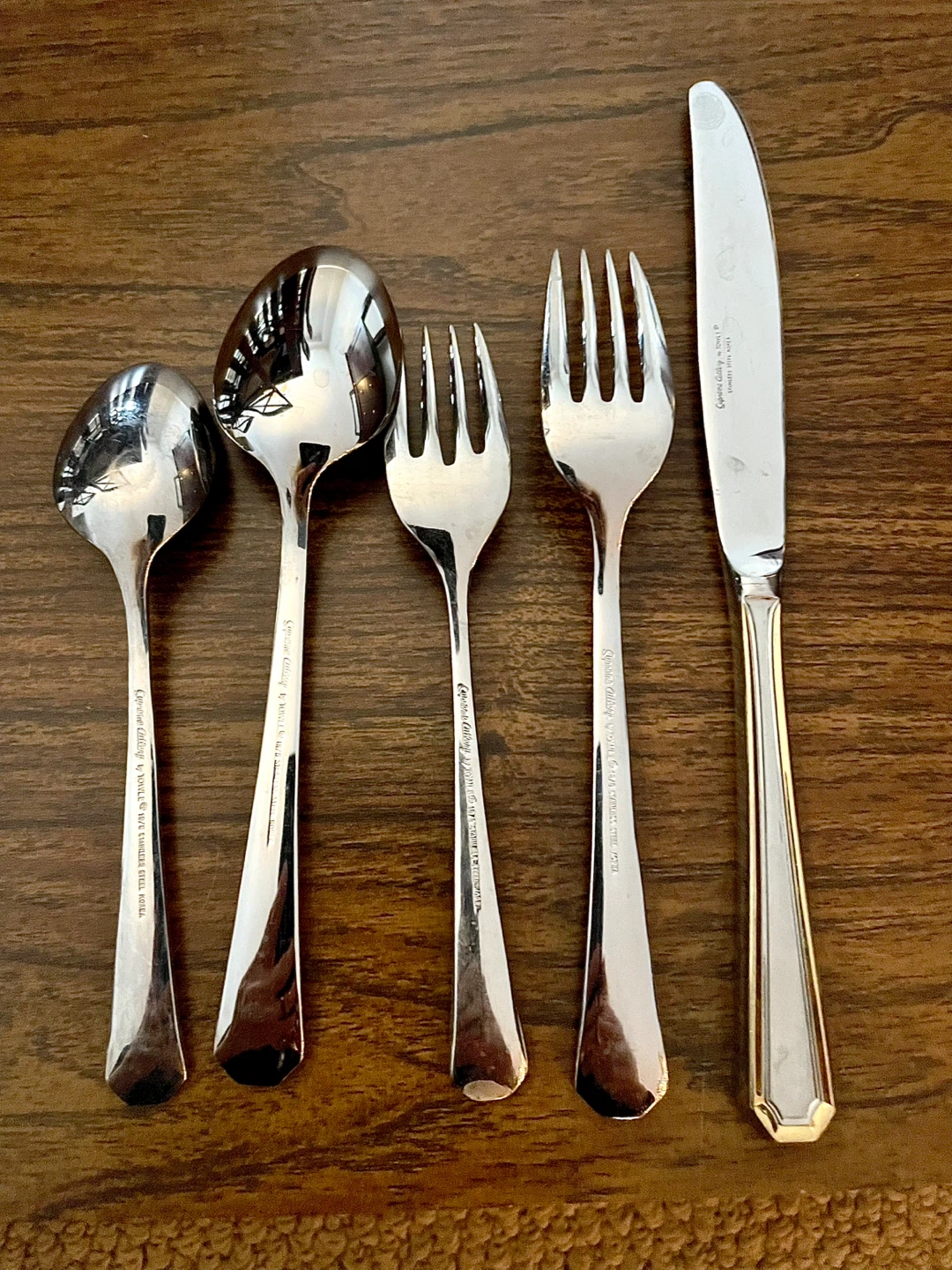 *note: only 6 dinner forks but 8 knives. Comes with 4 serving utensils.
