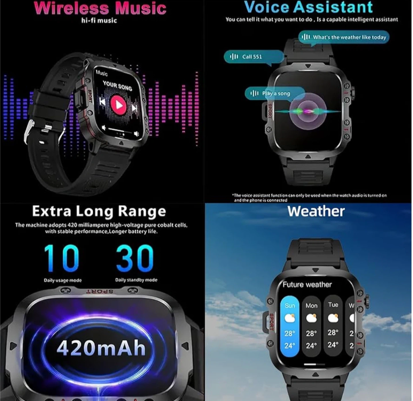 100+ Sports Modes: With 100+ sports modes including swimming, running, and ball games, this smartwatch is built to keep up with your active lifestyle.