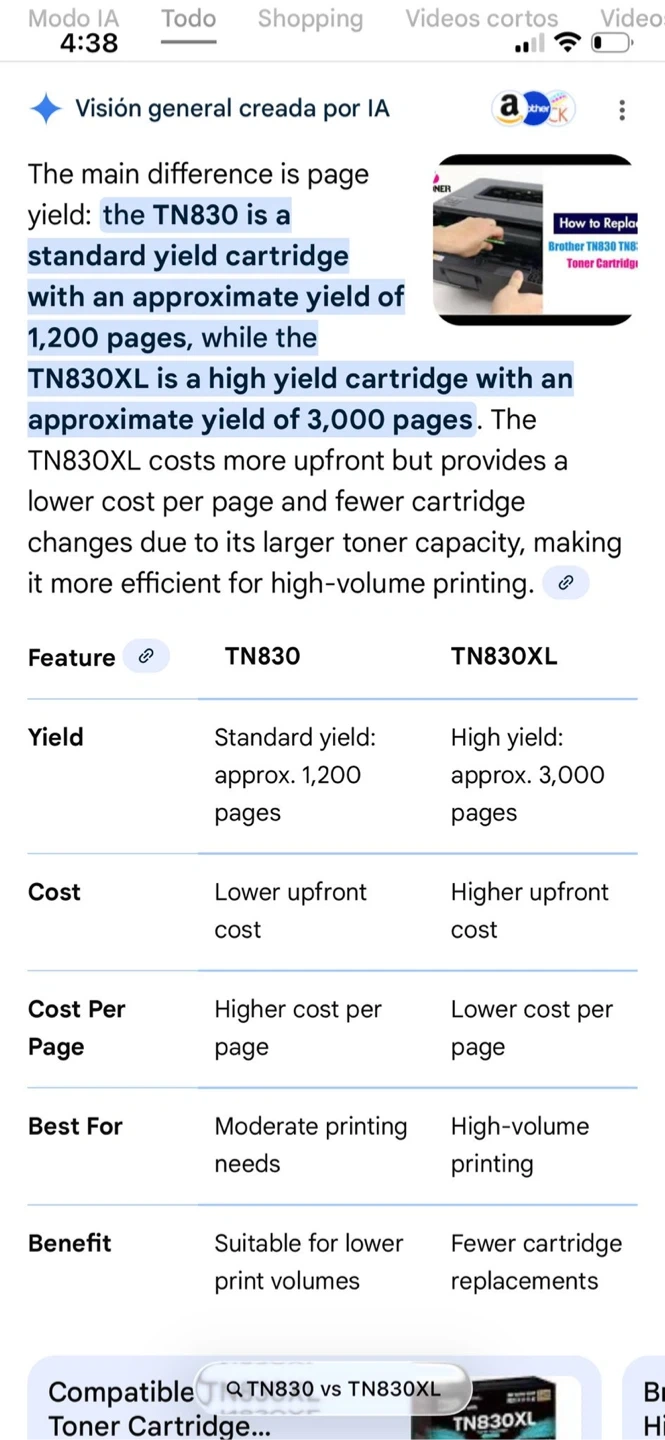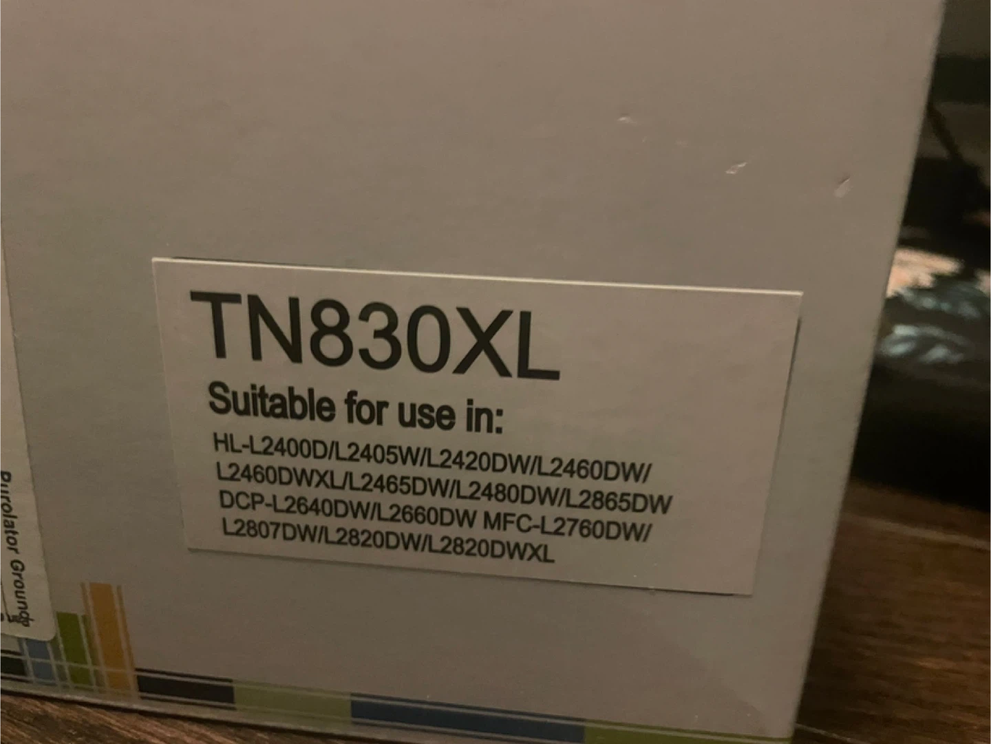 Selling a brand new Brother TN830XL high yield toner cartridge. It's suitable for use in a variety of Brother printers, including HL-L2400D/L2405W/L2420DW/L2460DW/L2460DWXL/L2465DW/L2480DW/L2865DW, DCP-L2640DW/L2660DW, and MFC-L2760DW/L2807DW/L2820DWXL models. The TN830XL is a high yield cartridge with an approximate yield of 3,000 pages, making it more efficient for high-volume printing