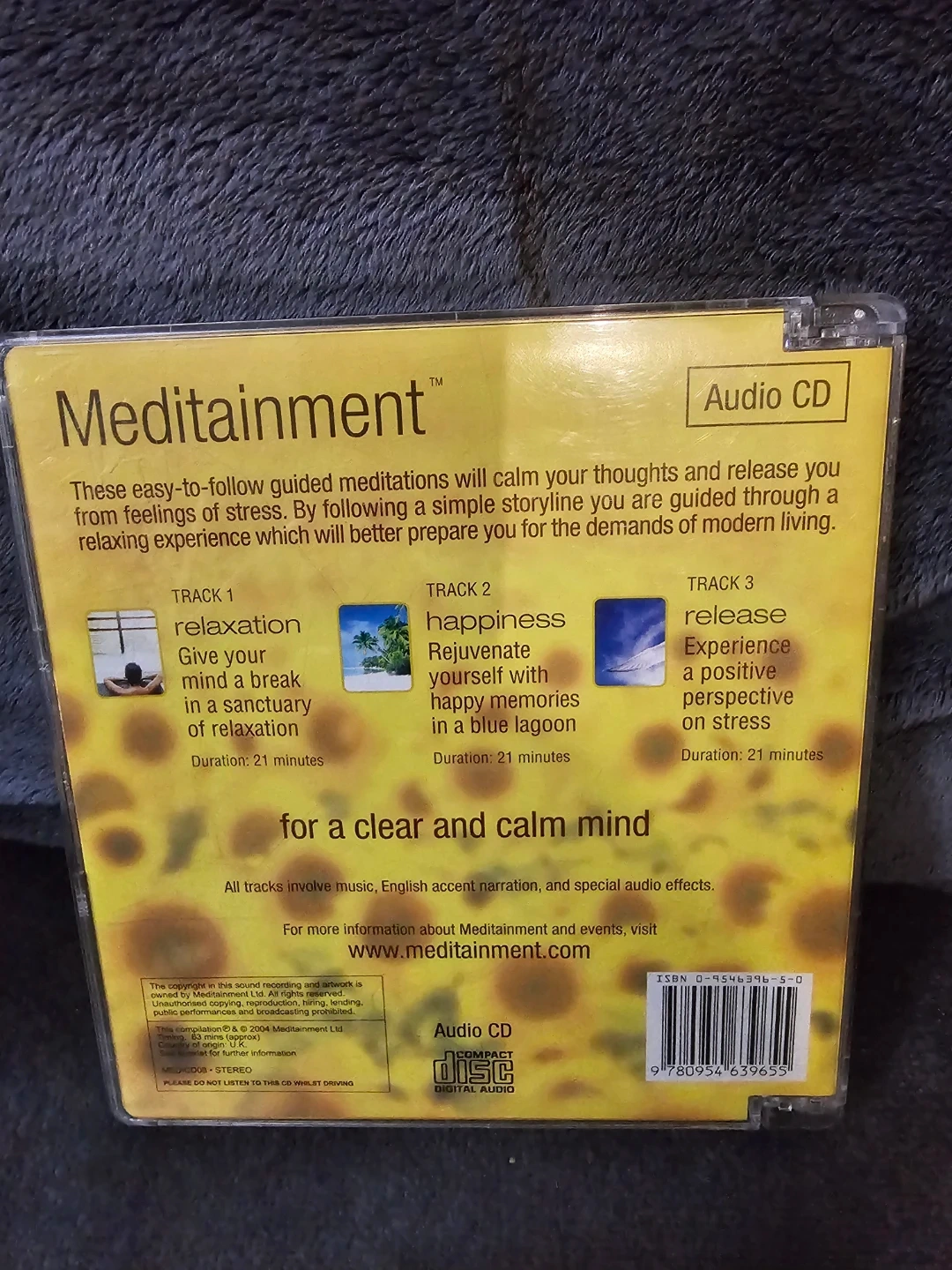 Meditainment Stress Relief Audio CD for a clear and calm mind. These easy-to-follow guided meditations will calm your thoughts and release you from feelings of stress. By following a simple storyline you are guided through a relaxing experience which will better prepare you for the demands of modern living