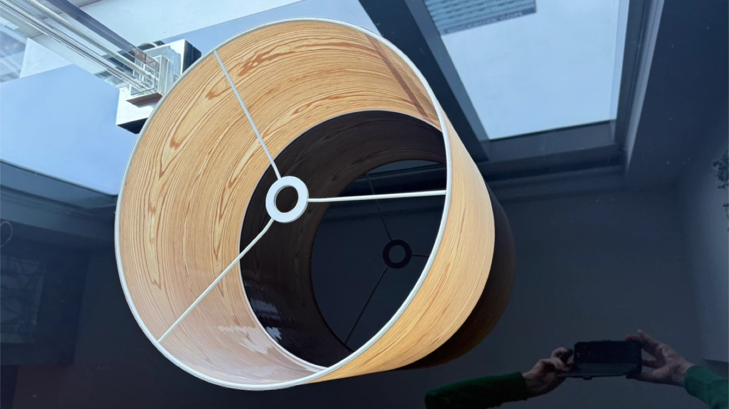 π§‘ lampshade made of real, natural wood grain.