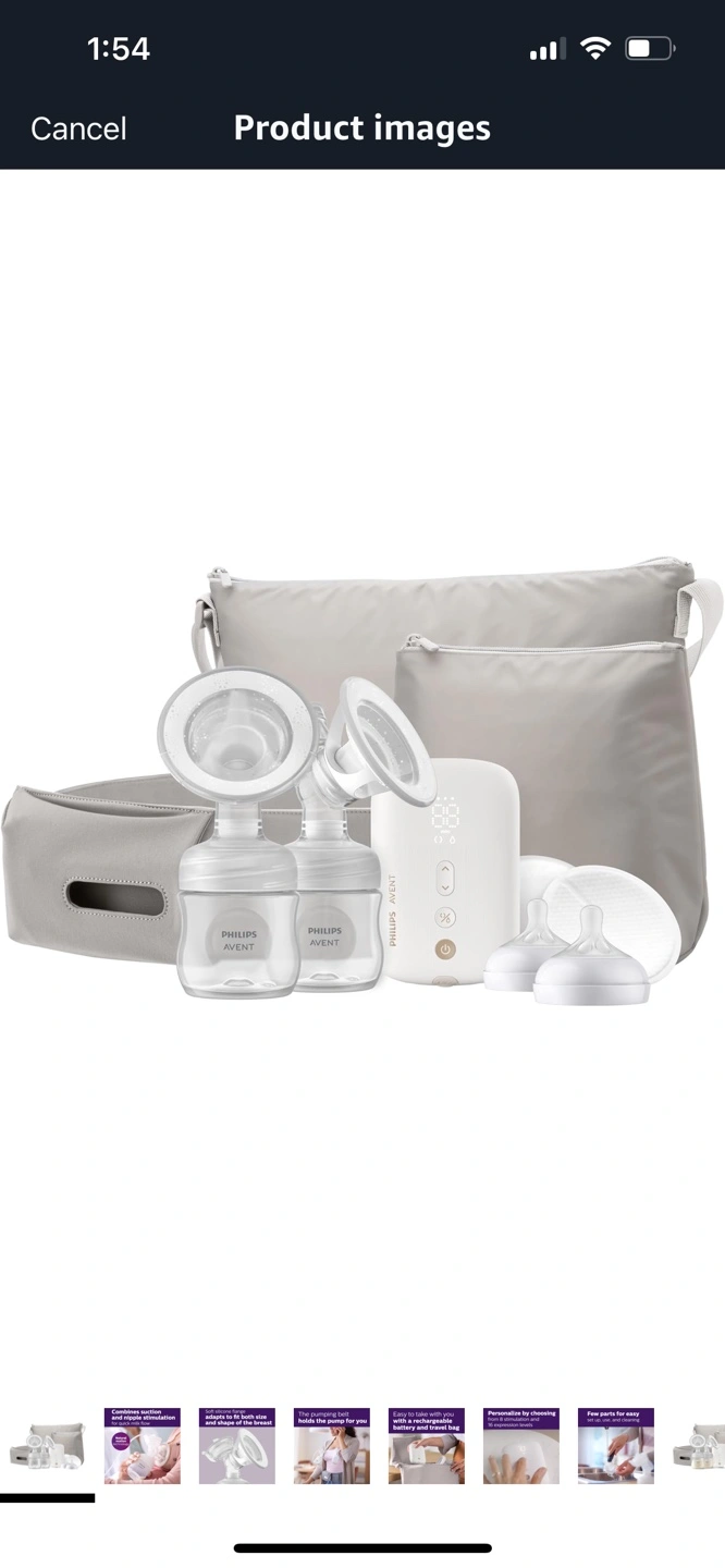 Double electric breast pump. Includes bottles, nipples, and carrying case. Rechargeable. Used for about a month, pick up only