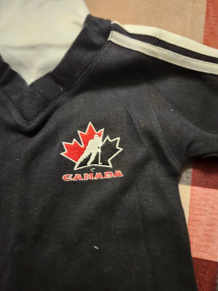 Cute Nike Canada onepiece for your little one! There are some stains on the front, but otherwise it's in good condition.