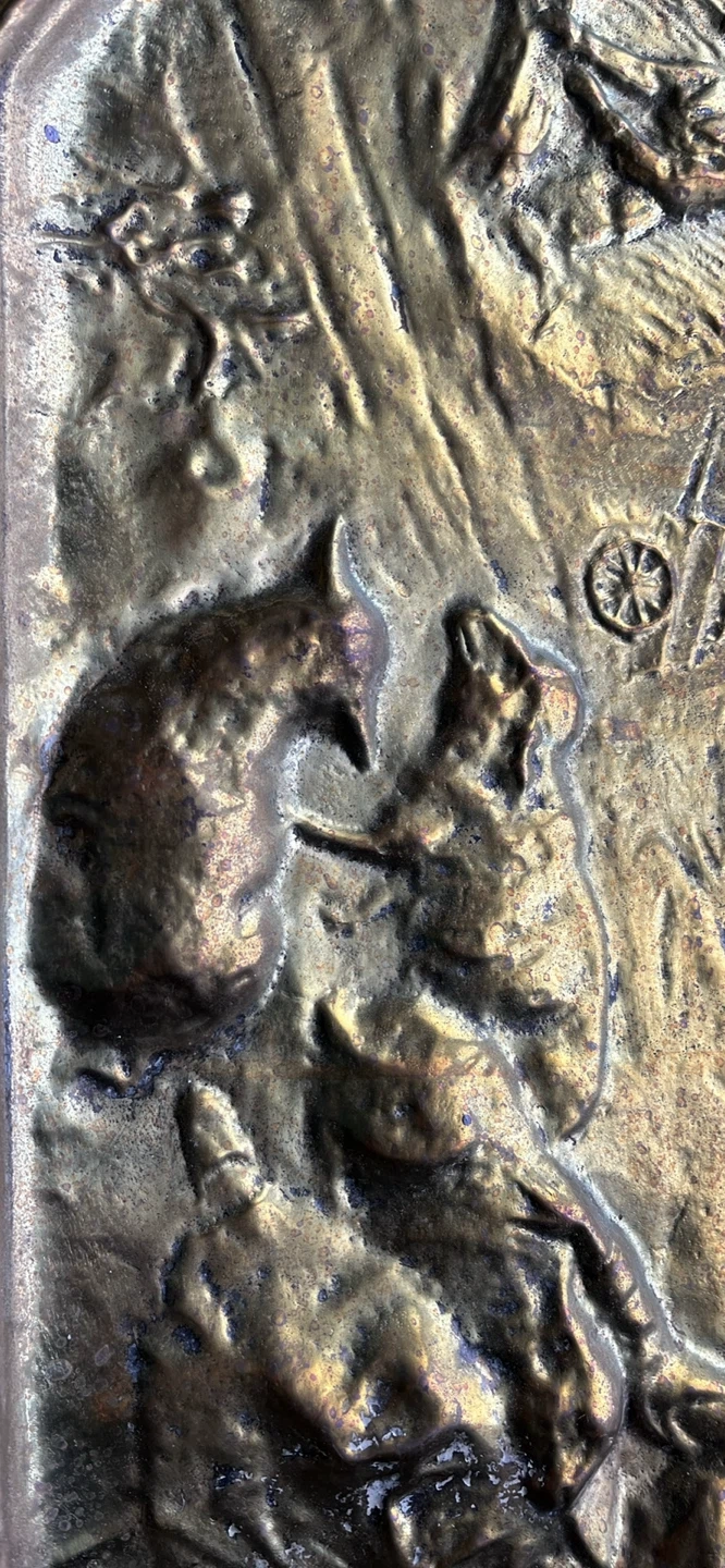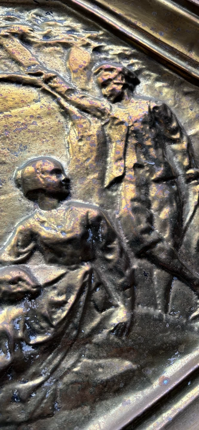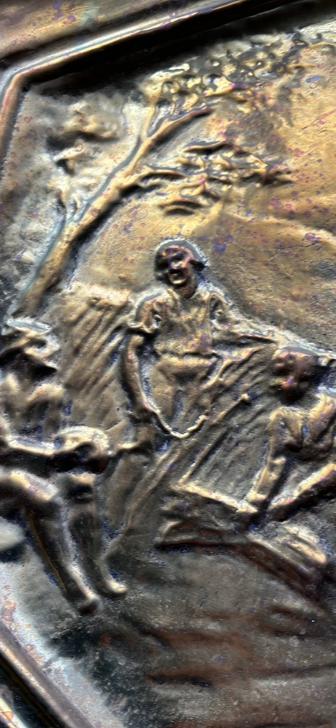 Vintage Ornate Brass Tray with Embossed Scene