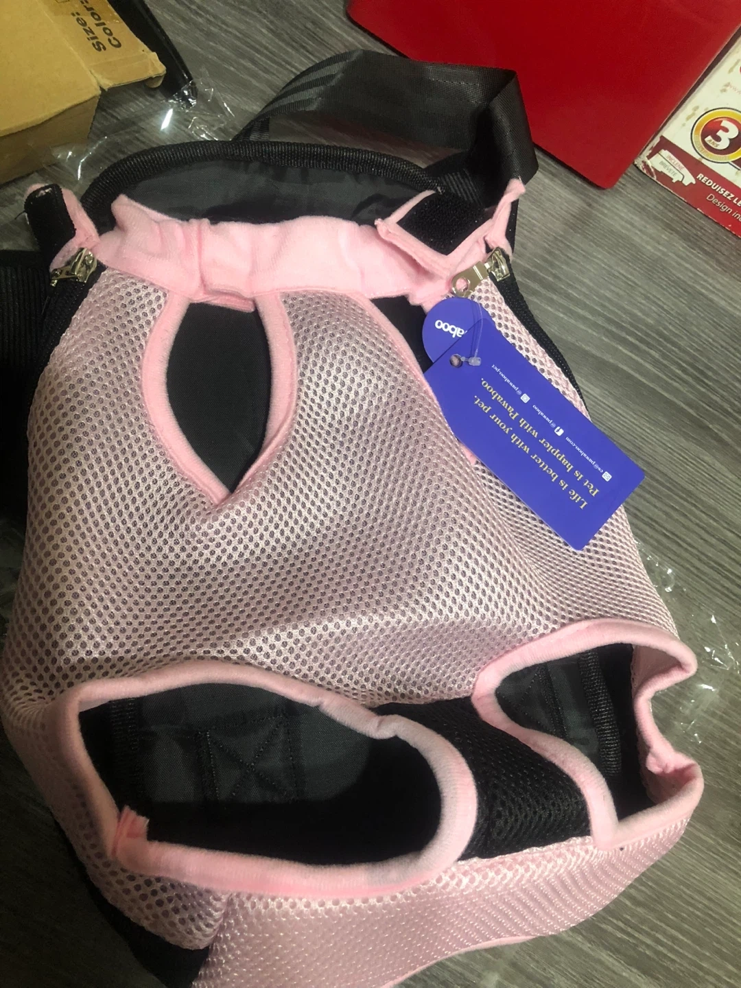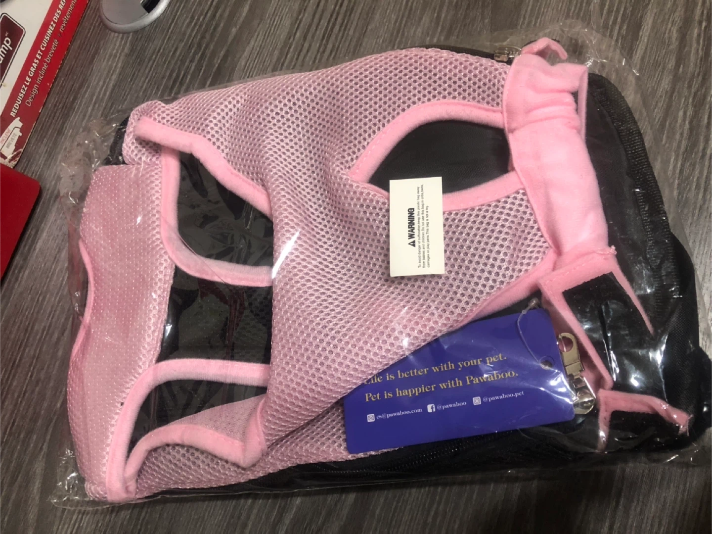 I'm selling a brand new Pawaboo pet carrier backpack! It's pink and black, size M, and still in its original packaging. It's perfect for keeping your furry friend safe and comfortable on all your adventures!