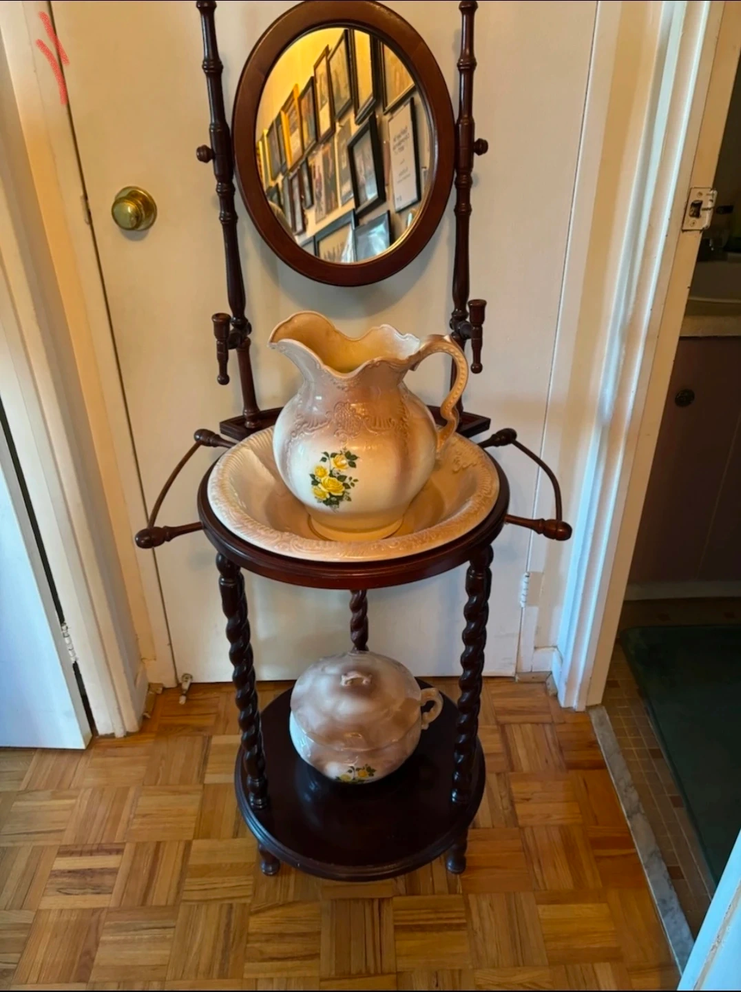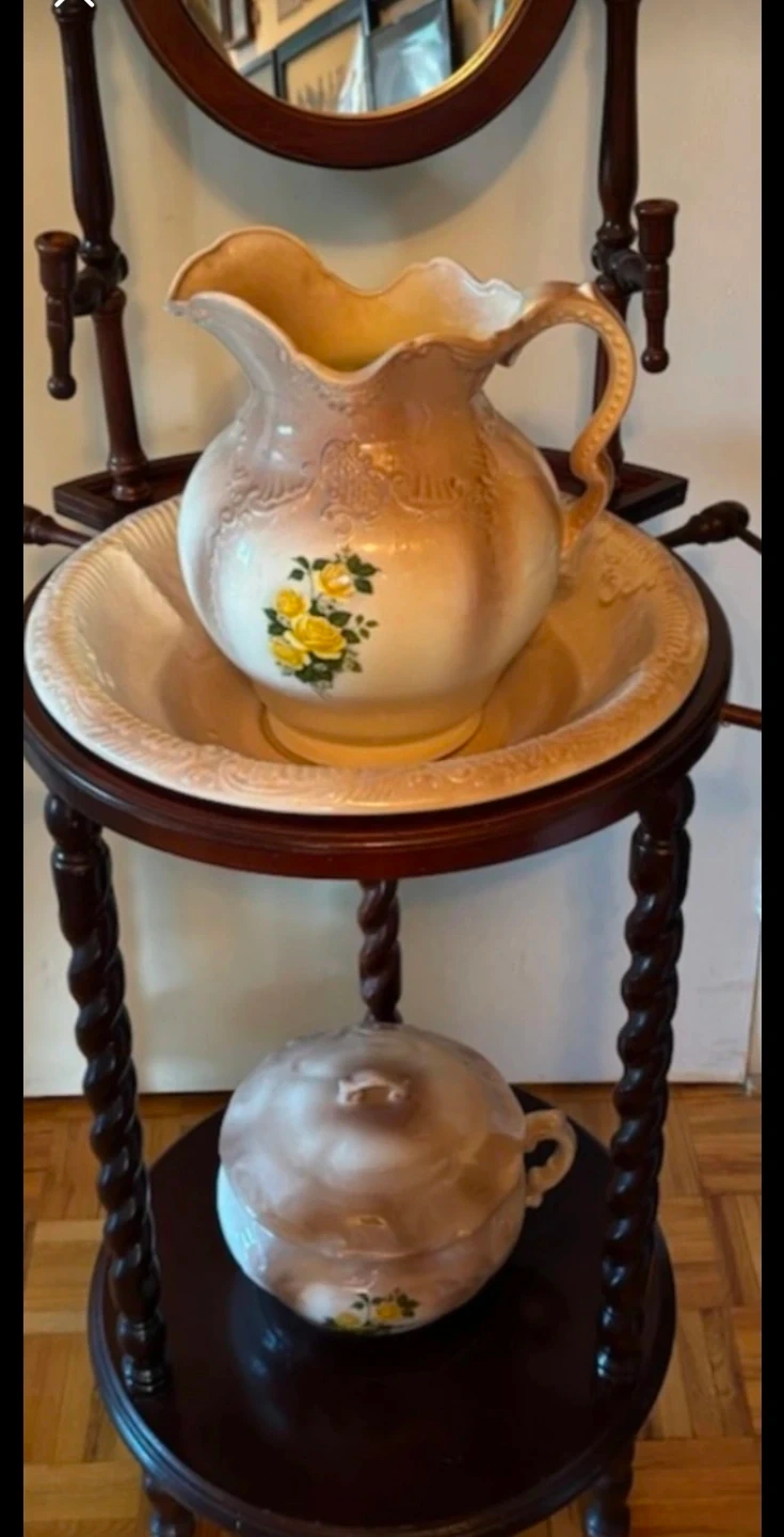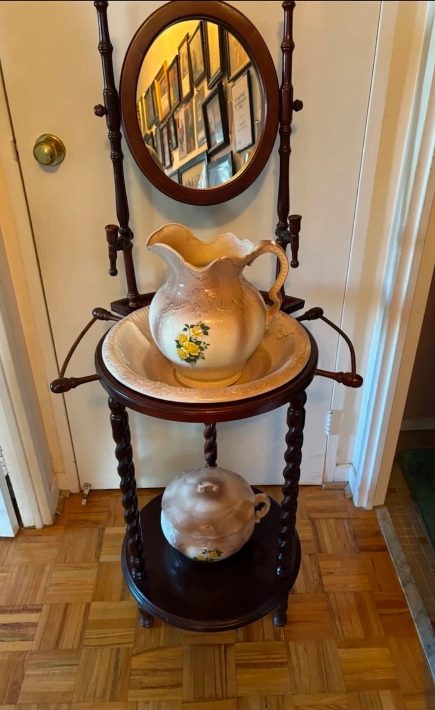 Antique Washstand with Pitcher and Bowl