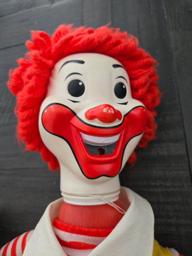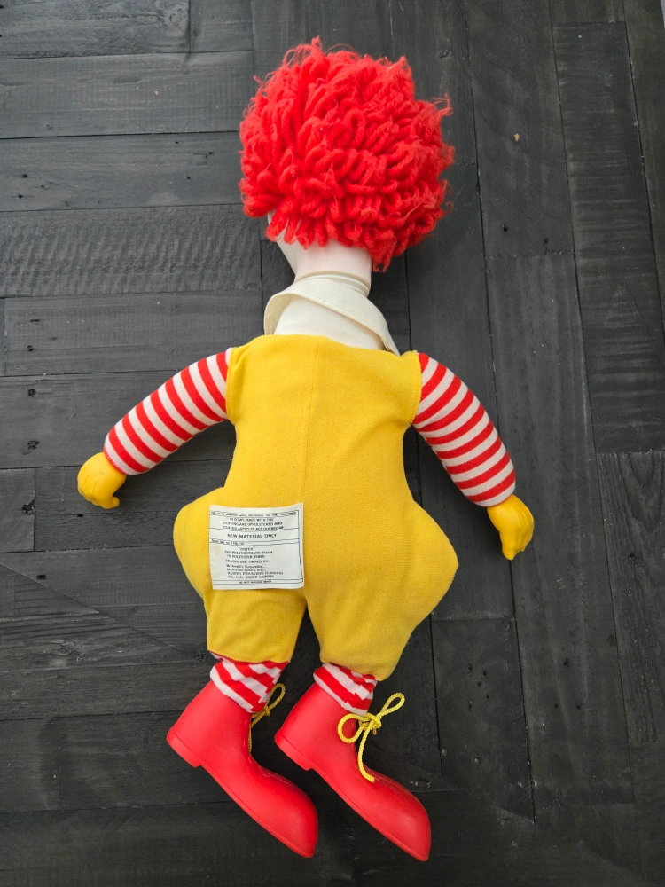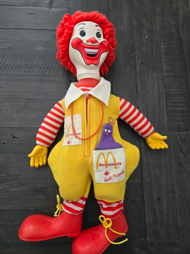 Buy & SellVintage McDonald's Ronald McDonald DollVintage McDonald's Ronald McDonald Doll$18Selling a vintage Ronald McDonald doll! It's in good condition for its age. Features the classic yellow jumpsuit with McDonald's logo. A great collectible for any McDonald's fan!WHERE TO MEETWestoak Trails BoulevardView MapSELLERverifiedRobWest Oak Trails650 reviews0 chats·1 favorites·8 viewsSEND CHAT TO SELLERHi Rob! I’m interested in your listing.Hi Rob! I’m interested in your listing.Get the Karrot app to chatSign In to chat