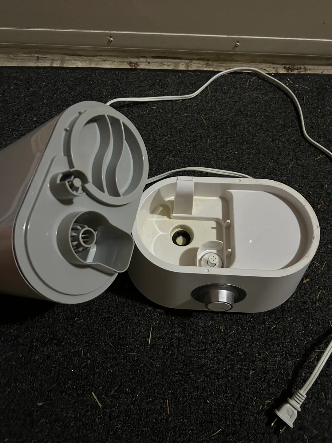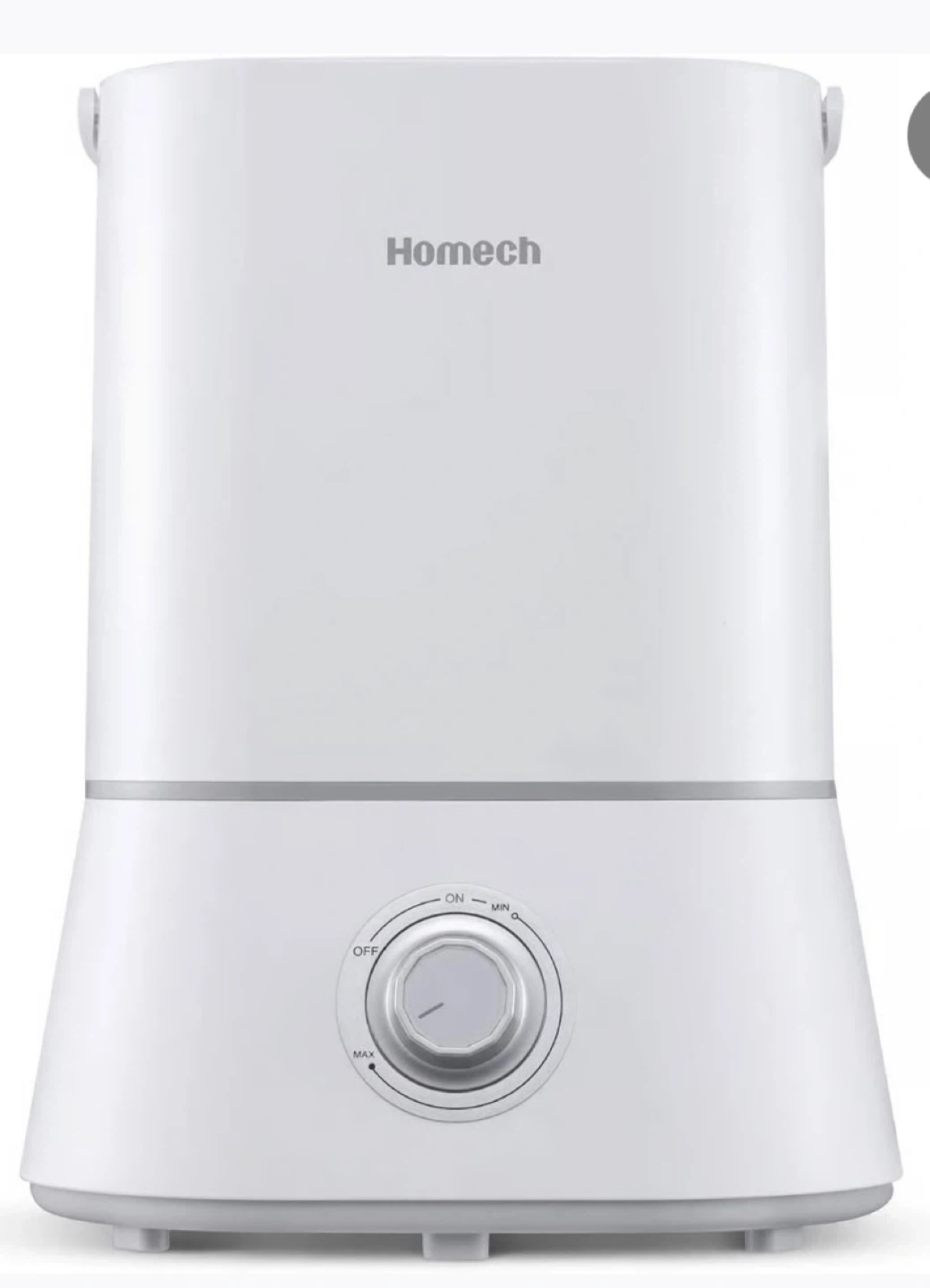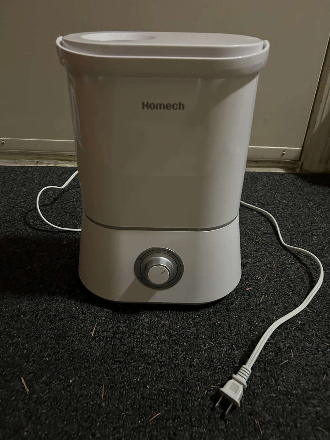 Homech humidifier, model HM-AH001. It has a 4.0L water tank volume and a mist output of 60-300ml/H. The noise level is less than 27dB(A). Good condition, barely used.