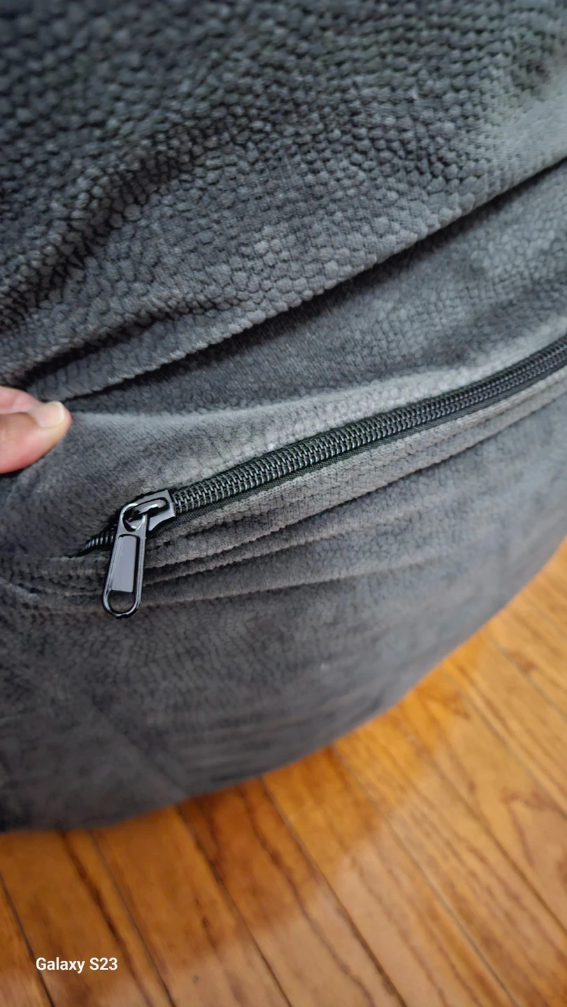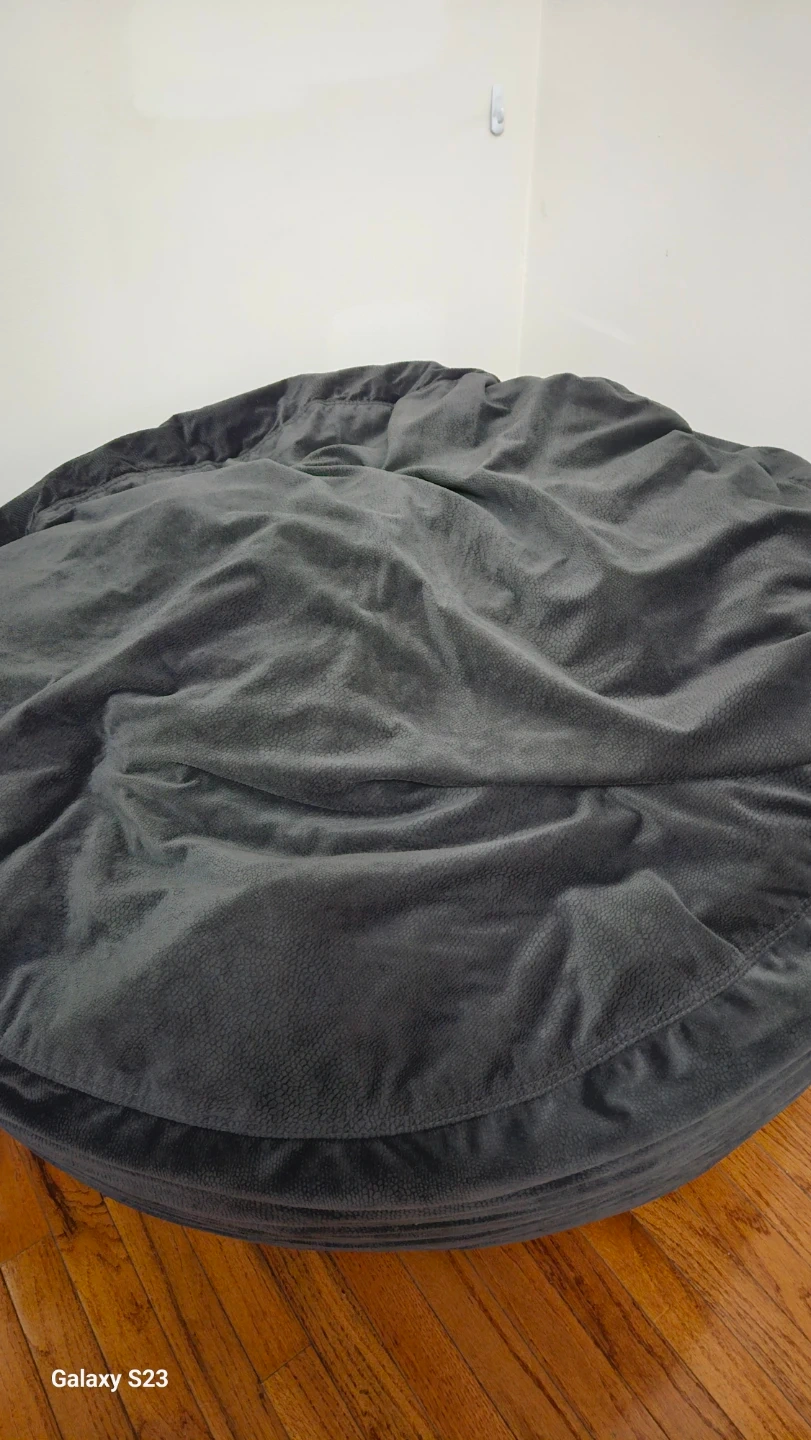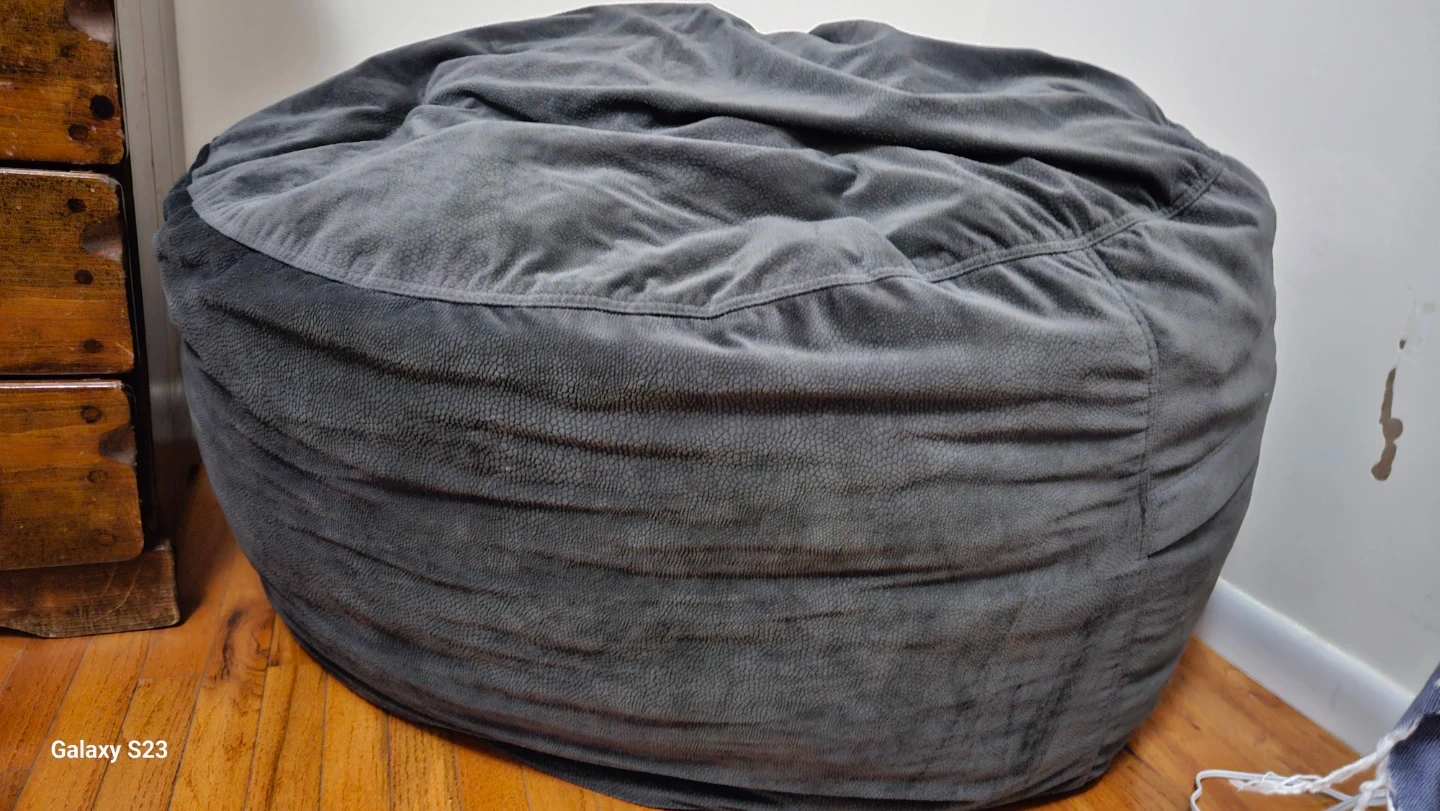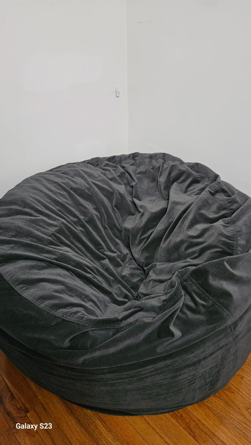 Gray memory foam bean bag chair. It is filled with shredded memory foam that conforms to your body for comfort and resists flattening over time.