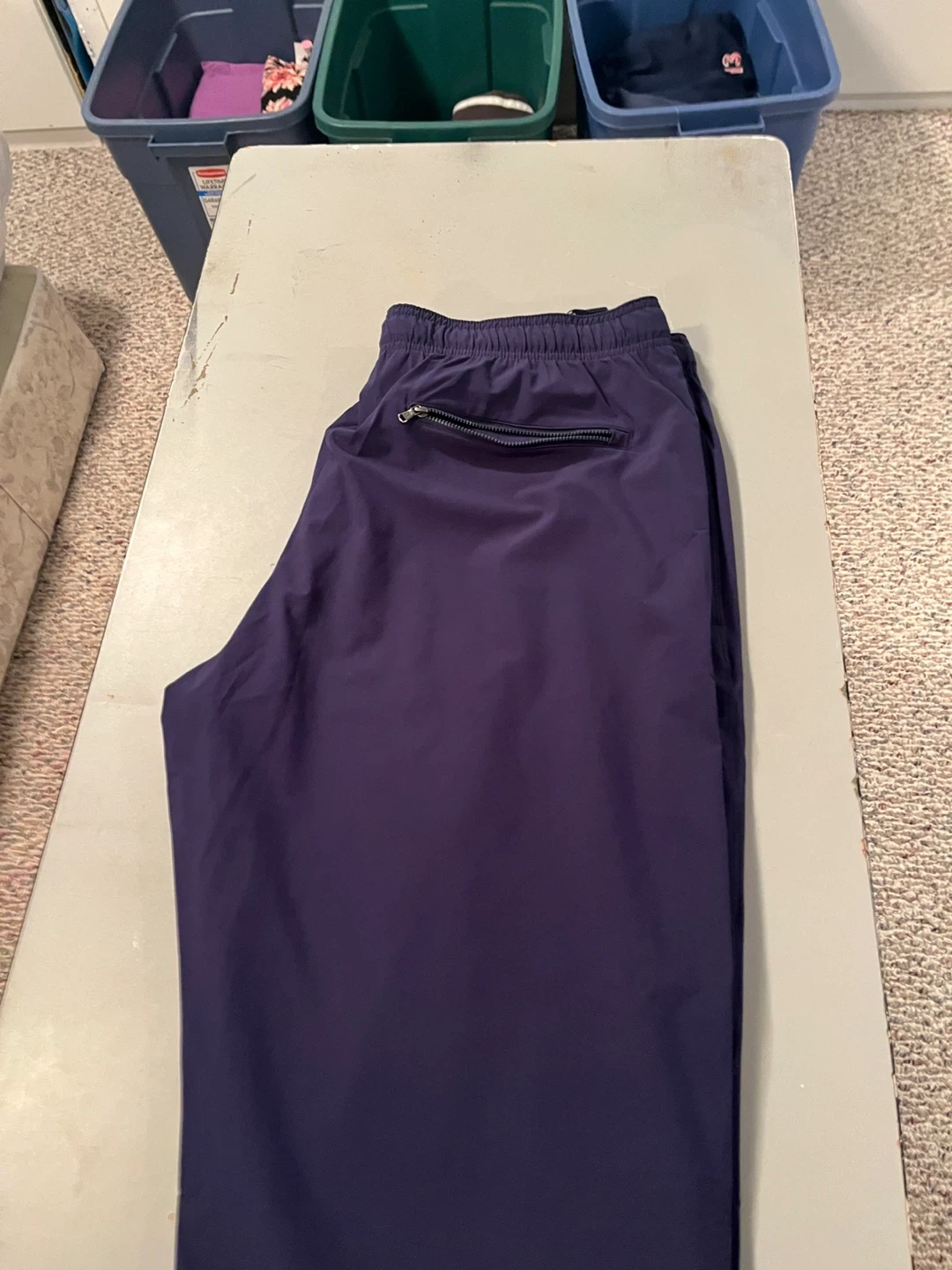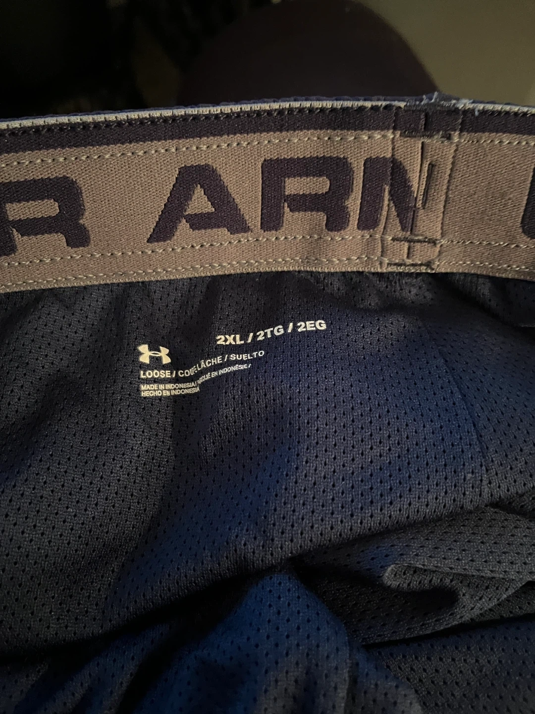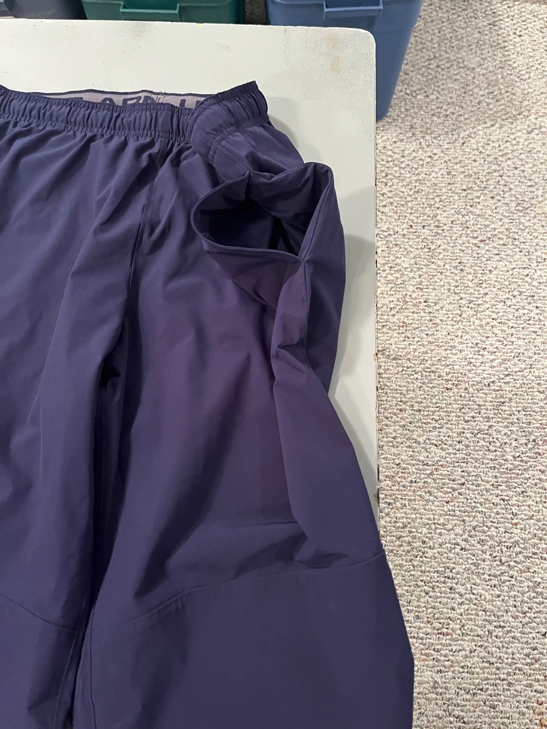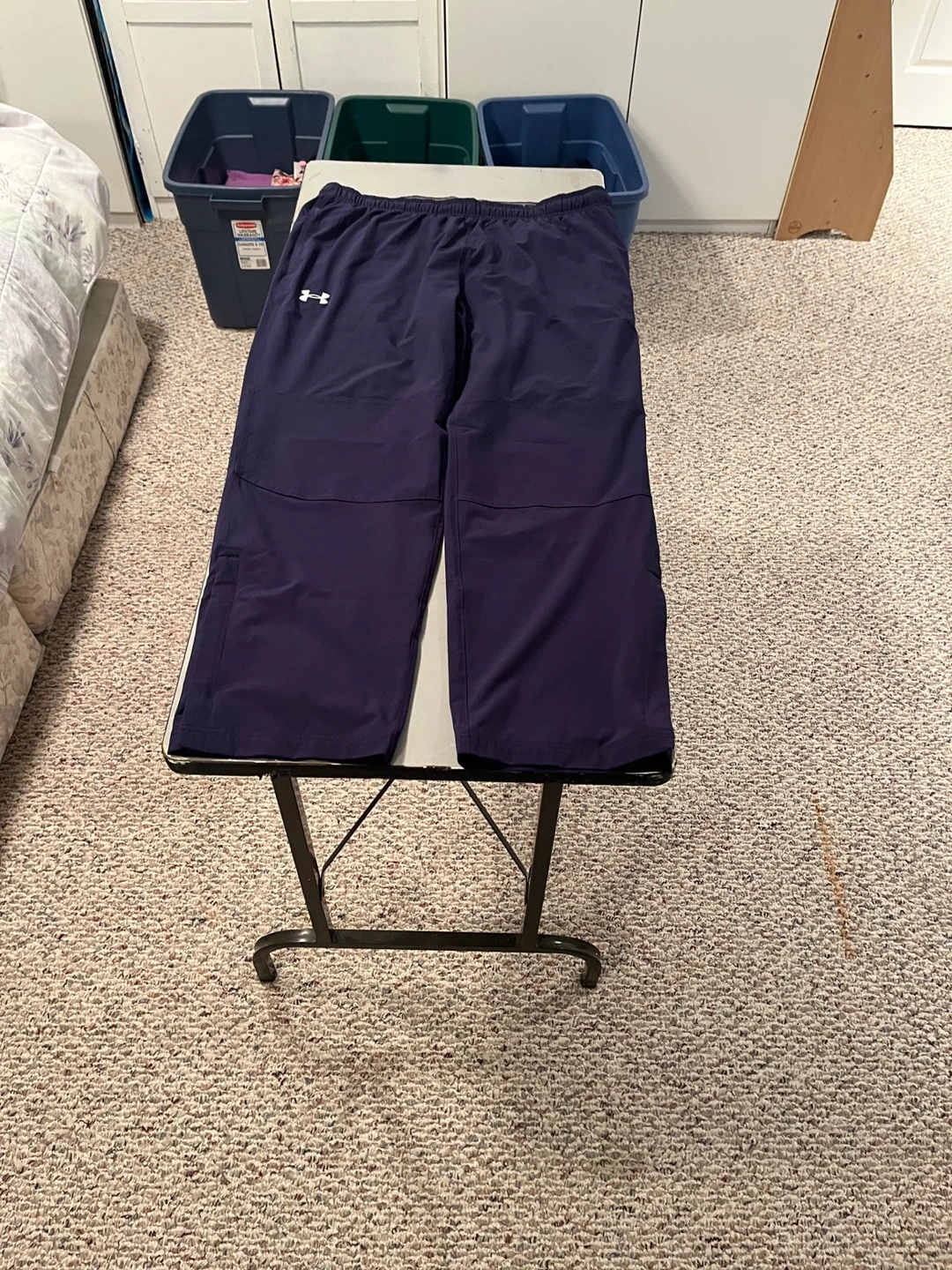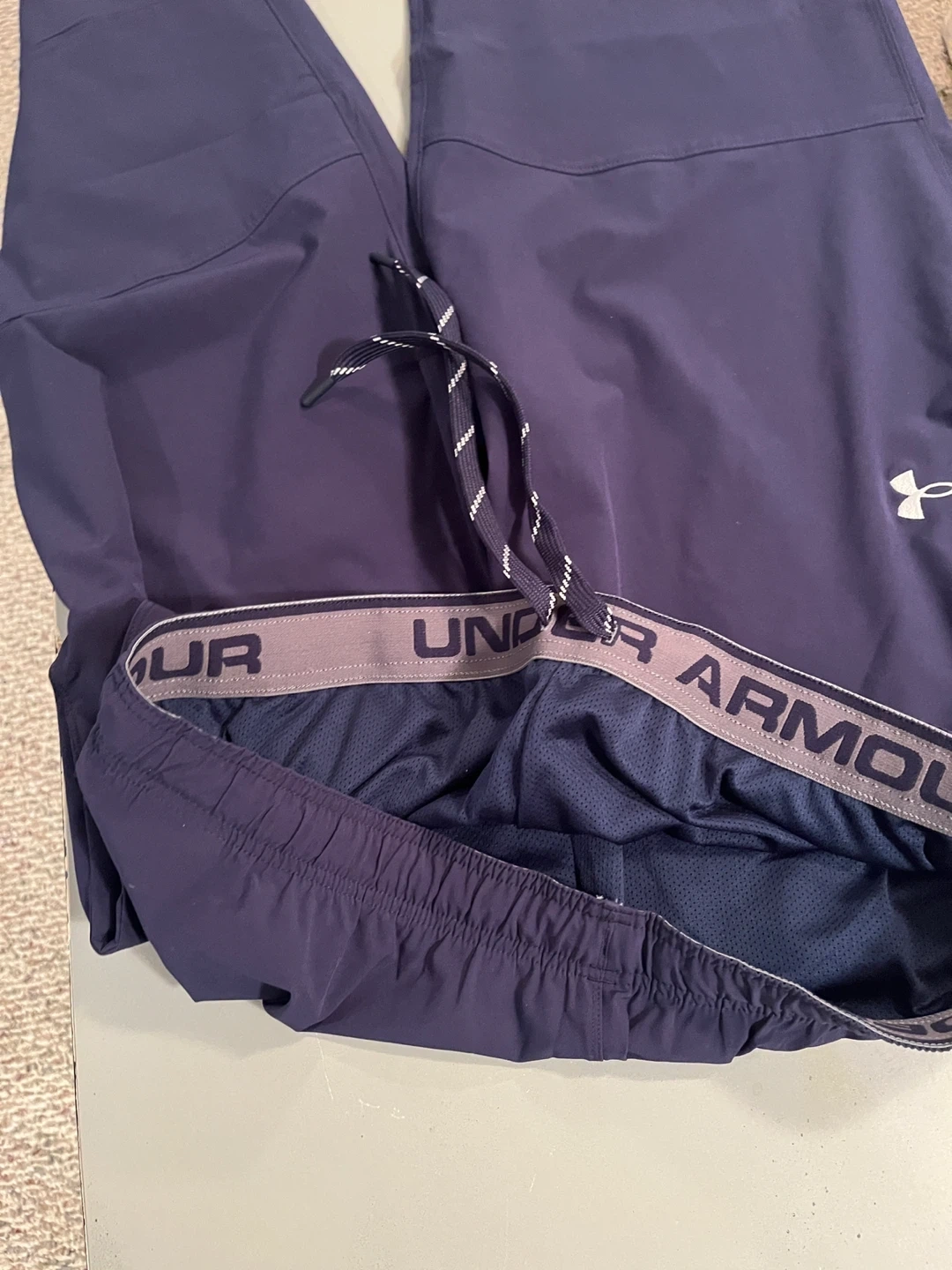 These Under Armour warm-up pants are in great condition! They're a nice navy blue colour and feature the Under Armour logo. Perfect for sports or just lounging around!