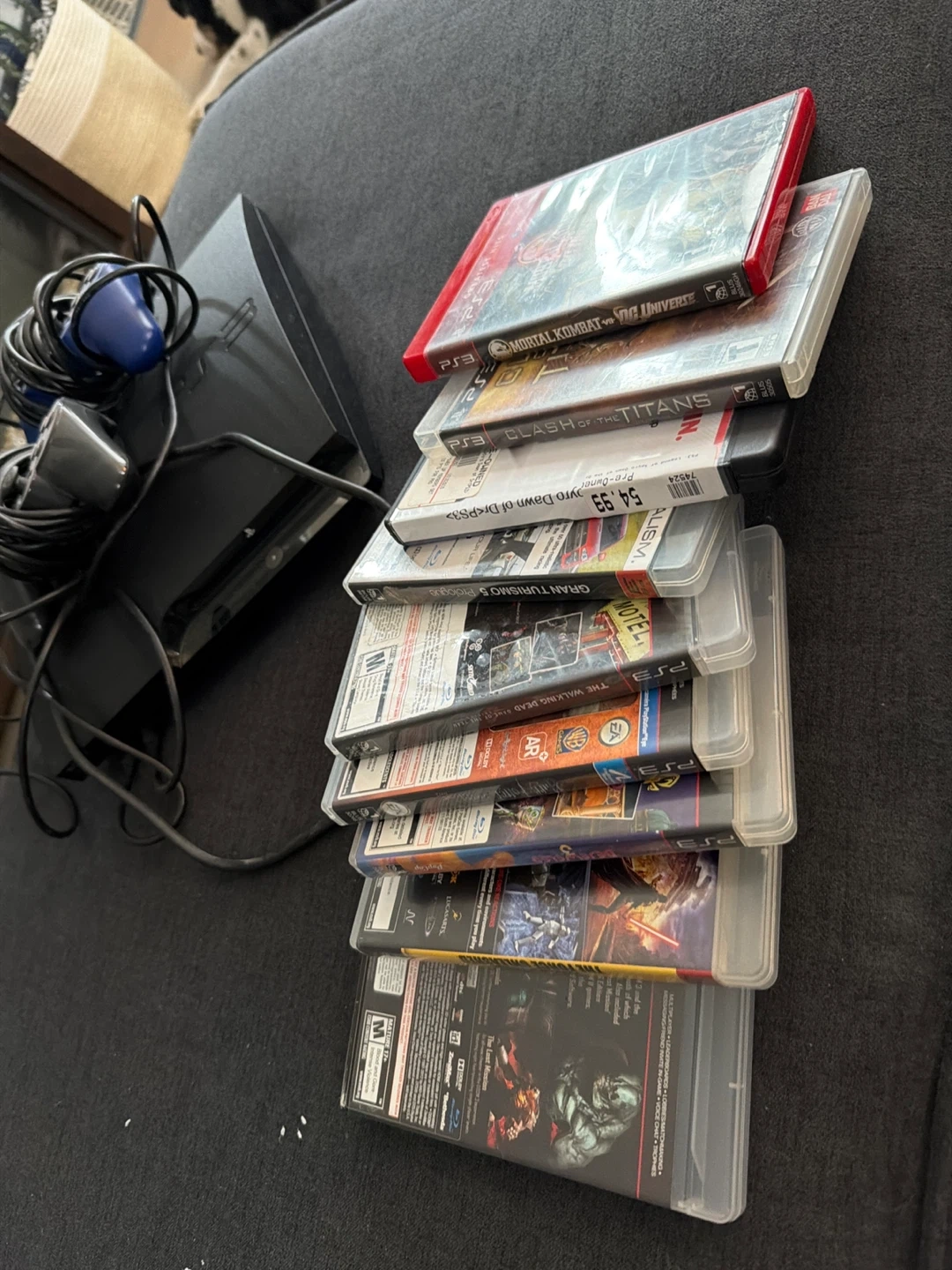Selling a PlayStation 3 console with a bunch of games. It comes with 2 controllers and all the necessary cables to get you gaming right away. Perfect for anyone looking to relive some classic PS3 titles!
