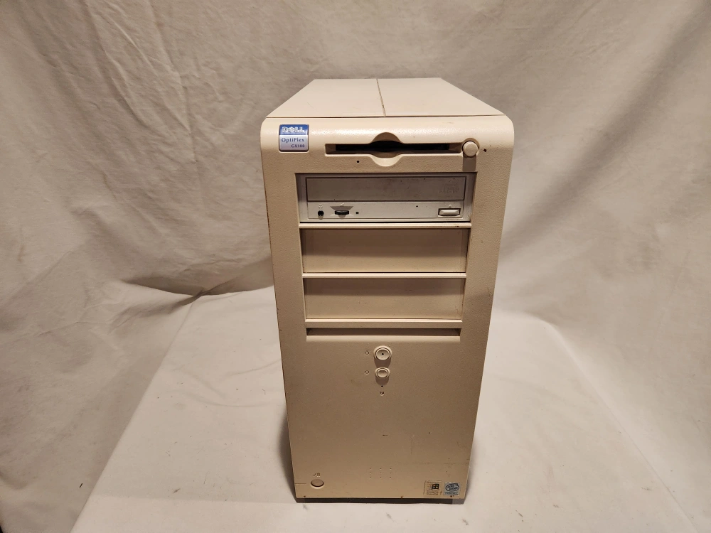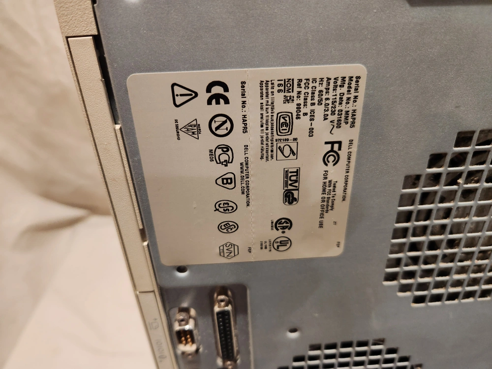 Selling a Dell OptiPlex GX100, model MMP desktop computer CPU. It shows some signs of use, as pictured. The manufacturing date is 2000 March 02. It has a beige color.