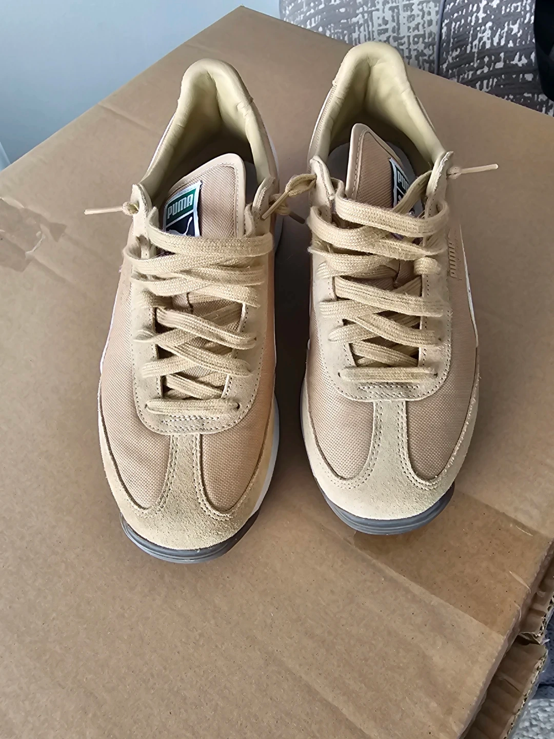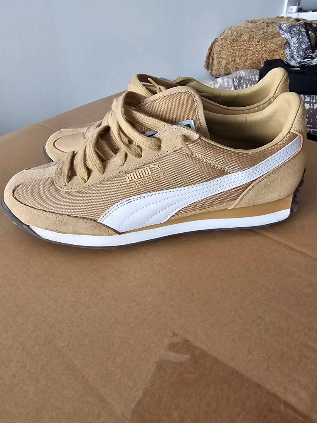 Selling a pair of Puma Vintage Runner sneakers in a lovely tan colour. These are in great shape and ready for a new owner. Perfect for adding a touch of retro style to your everyday look!