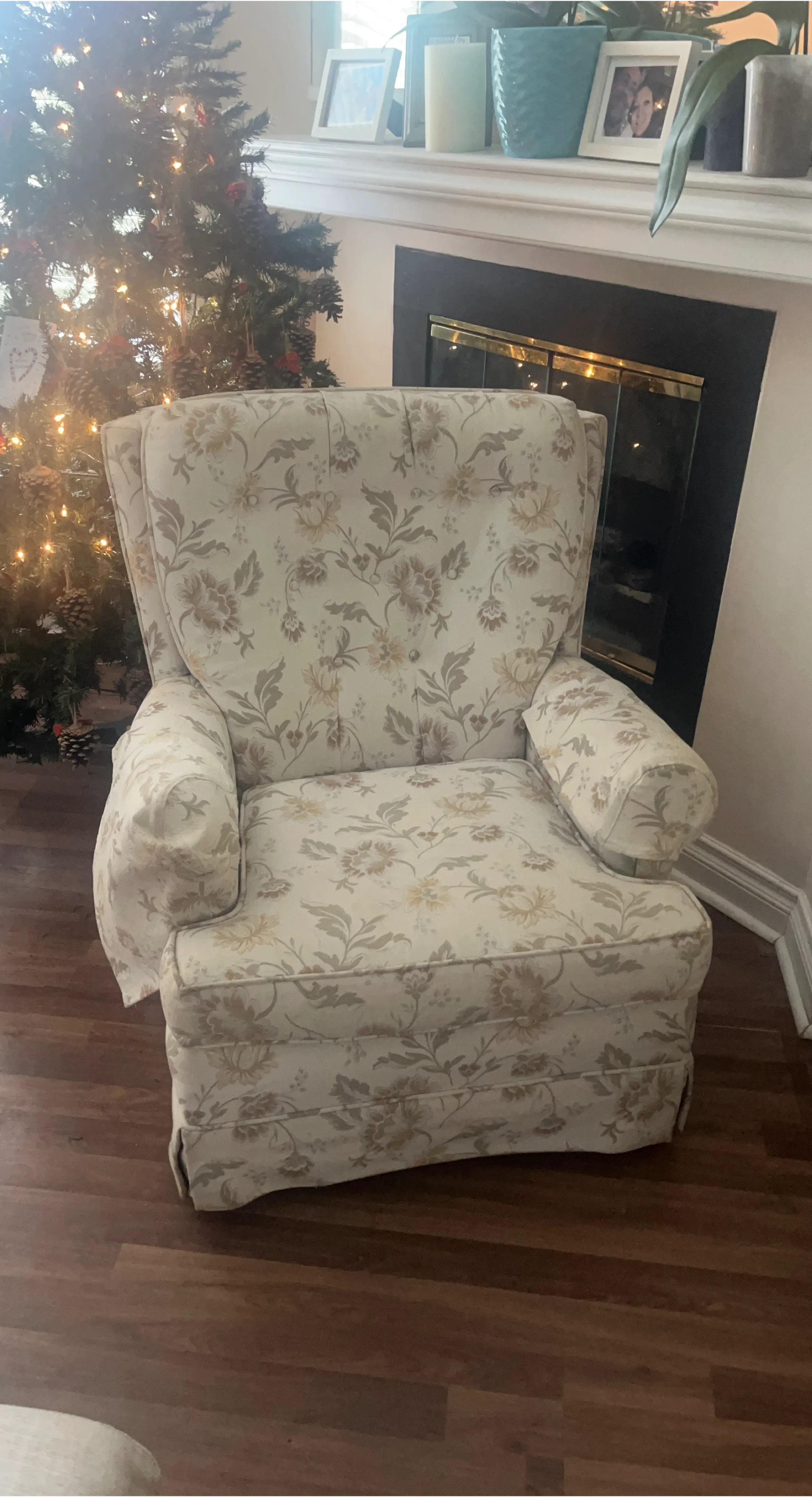 Selling two comfy wingback armchairs with a floral pattern. It's in good condition and would be a lovely addition to any living room or bedroom! The chair has a classic design with a high back and supportive armrests.