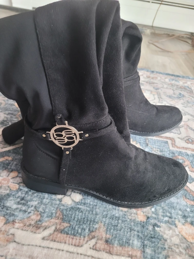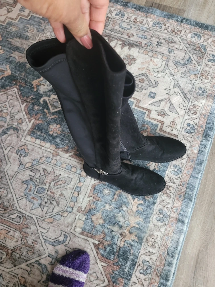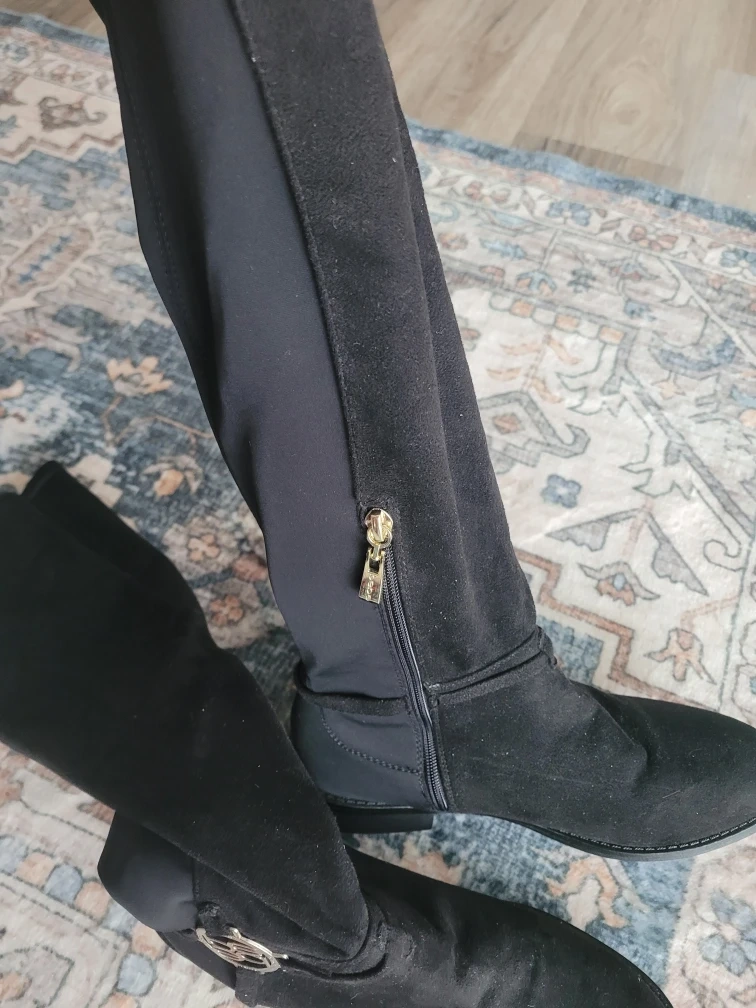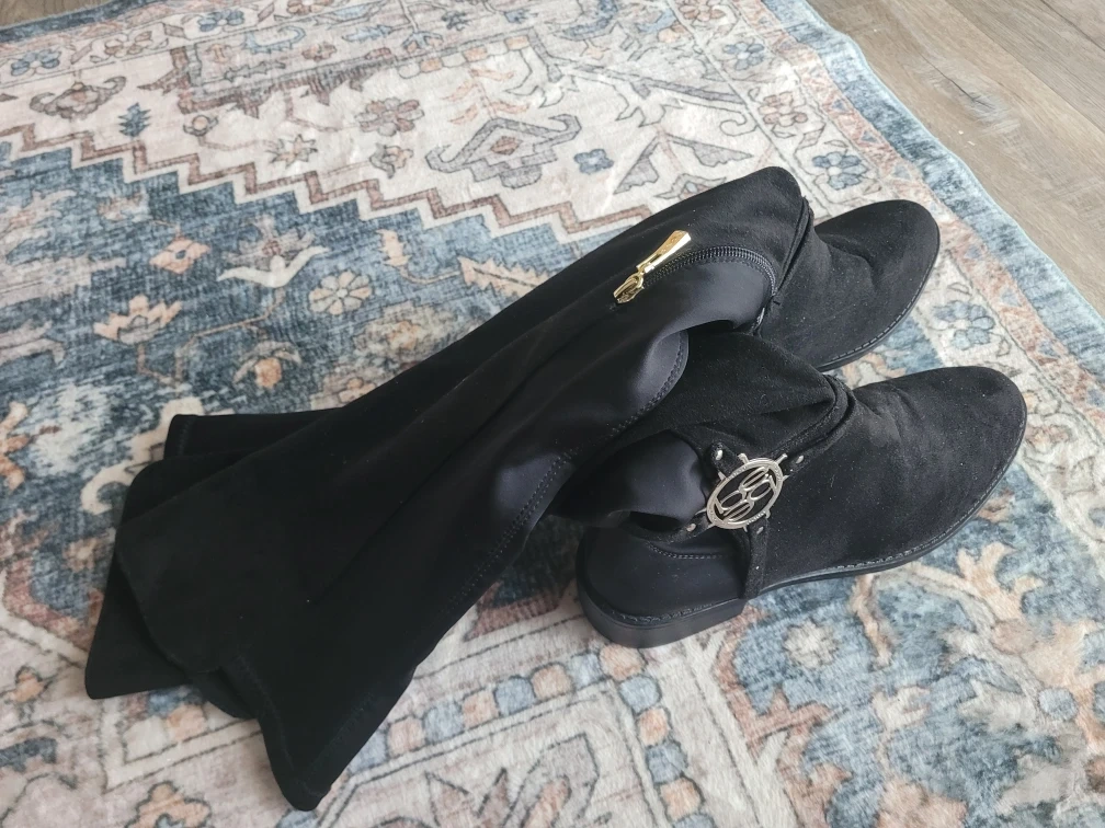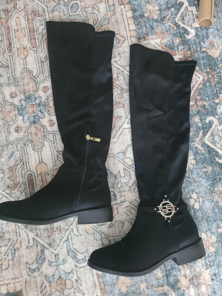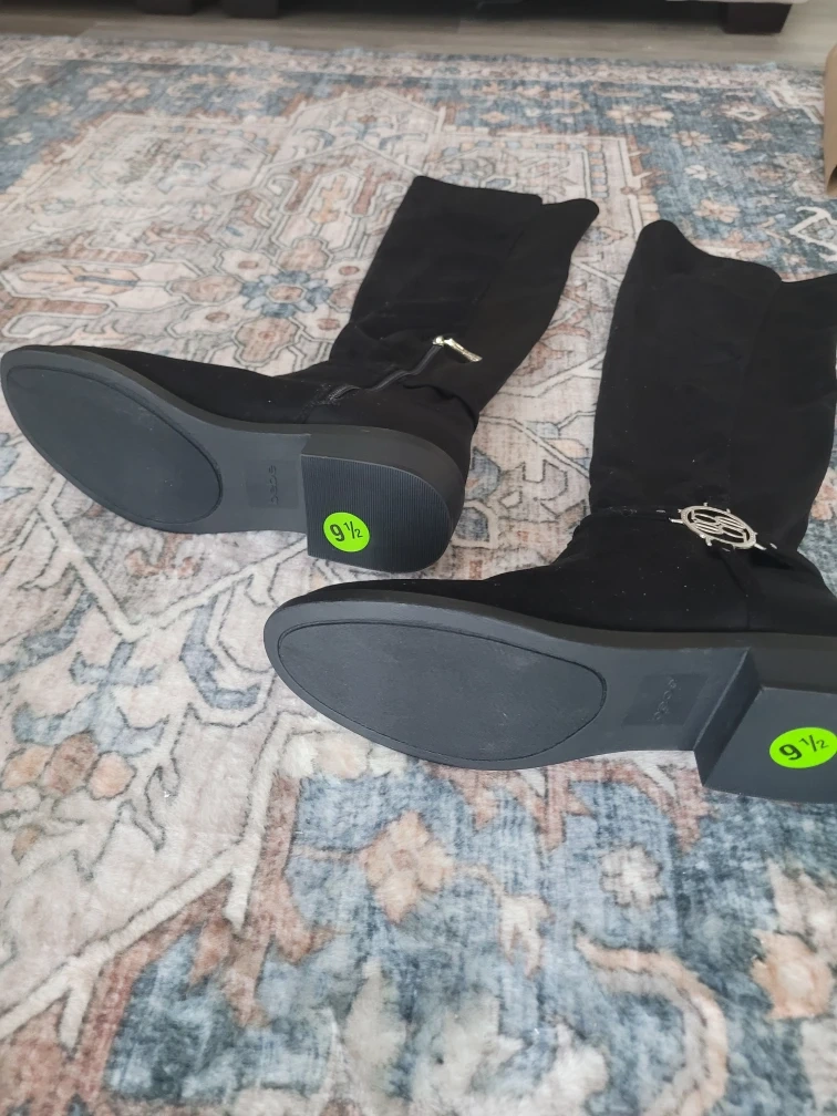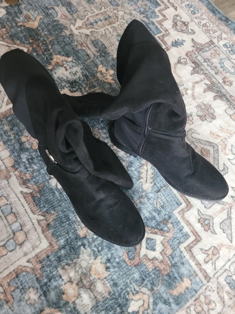 New Knee-high boots. Size 9.5 (9 1/2). They are made with a soft fabric that makes it perfect to be worn with a party dress , elegant dress or jeans/tights for that dress down look.
