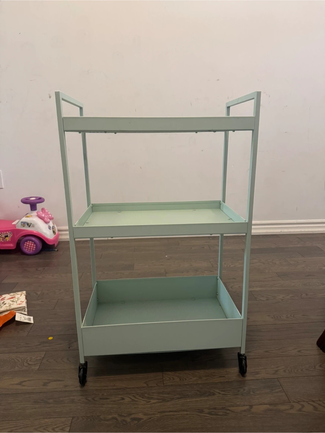 Selling a light green IKEA Raskog utility cart. It's in great shape and perfect for extra storage in the kitchen, bathroom, or anywhere you need a little more space. Easy to move around since it has wheels!