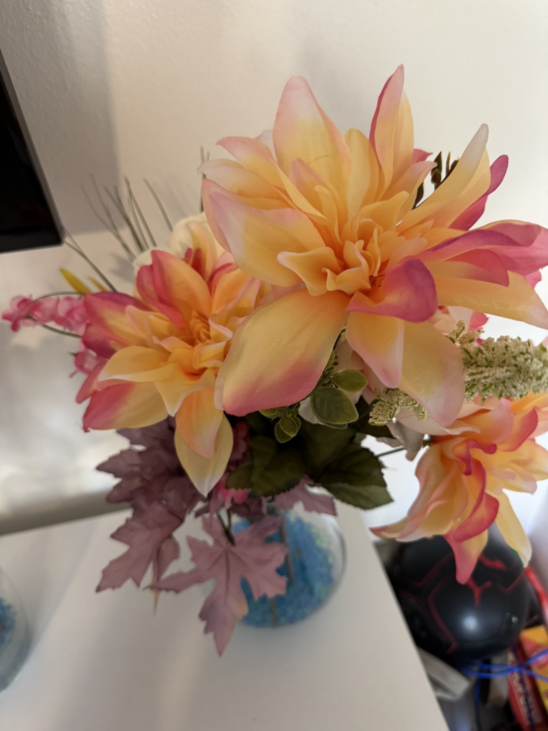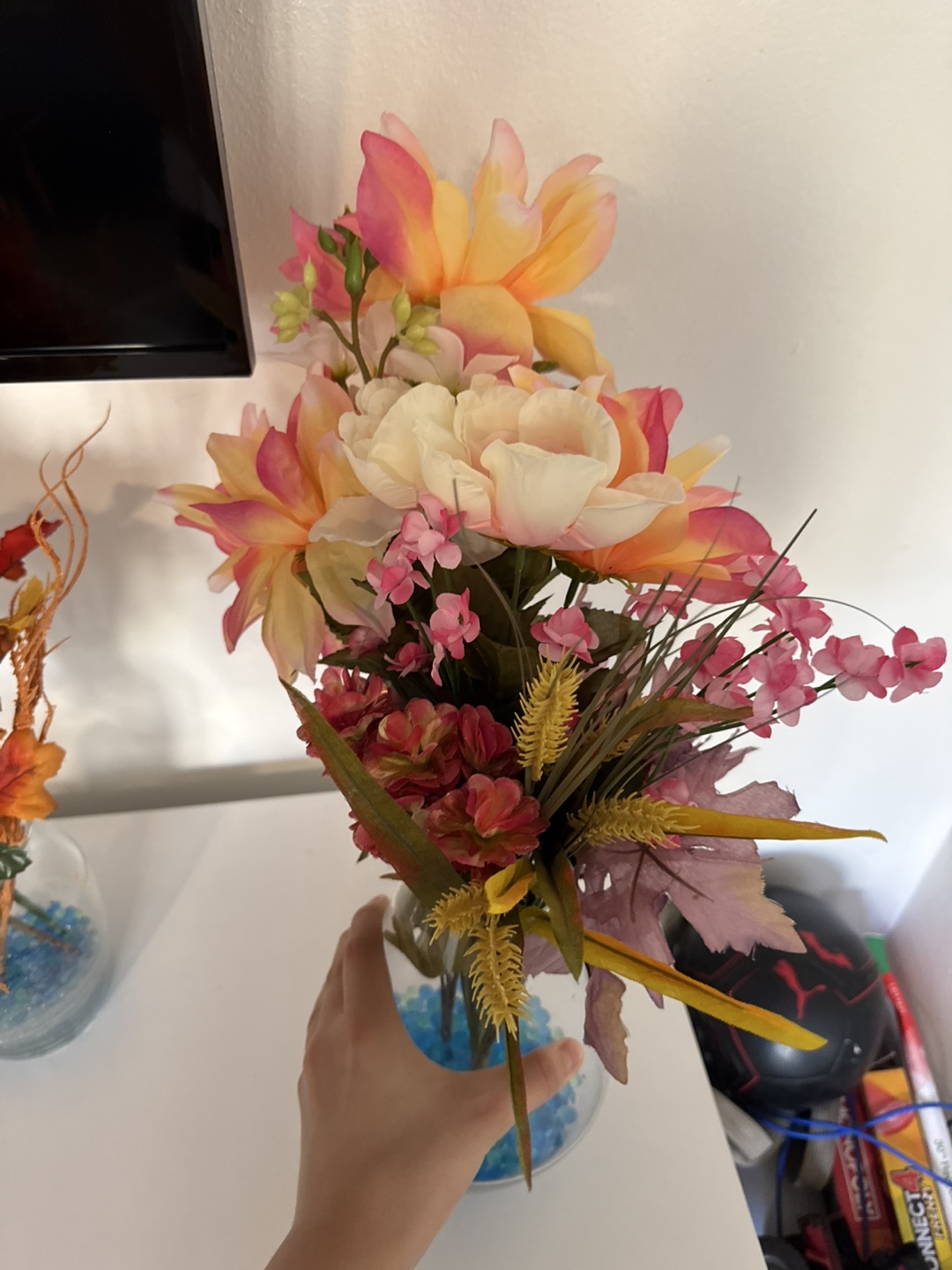Selling a beautiful artificial flower arrangement. It's perfect for adding a touch of color to any room