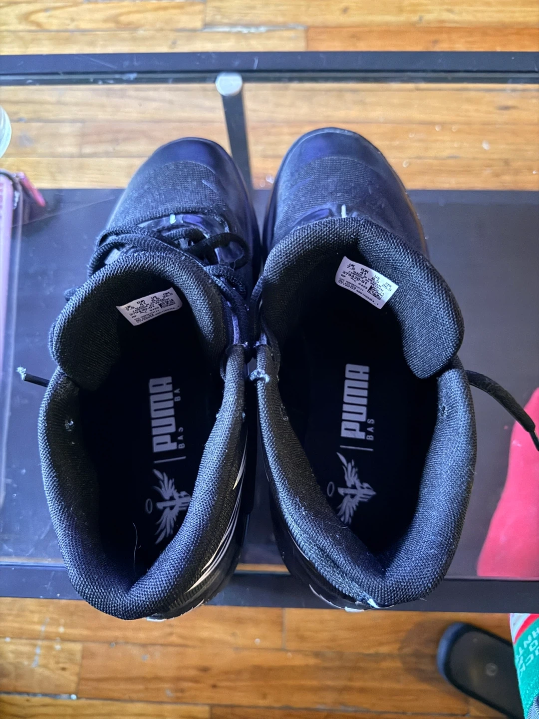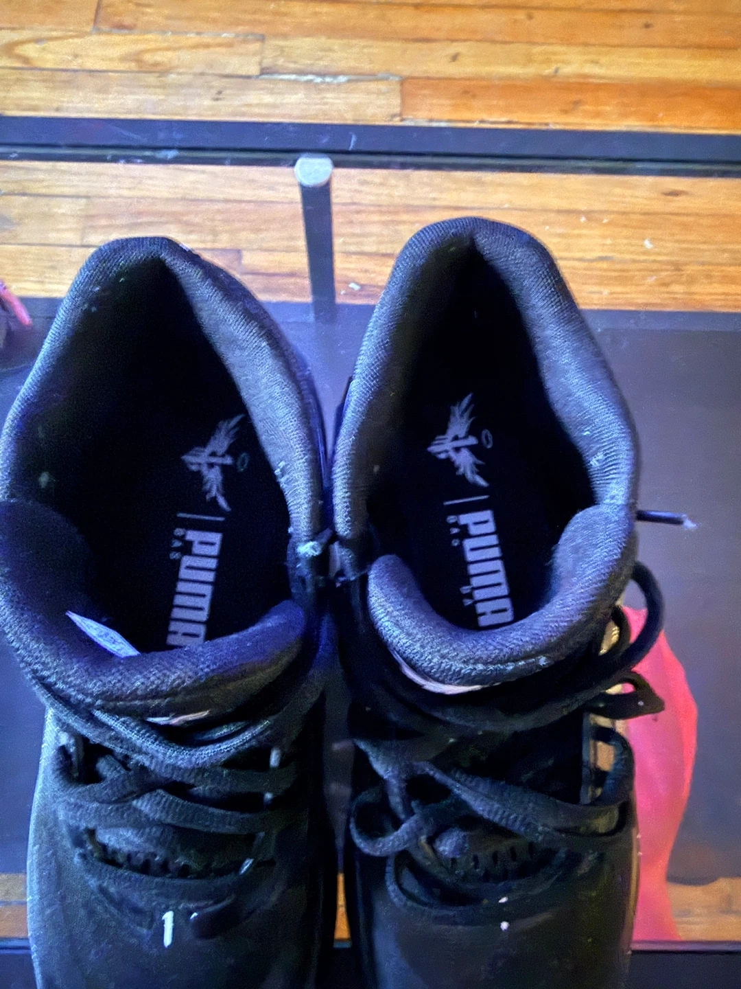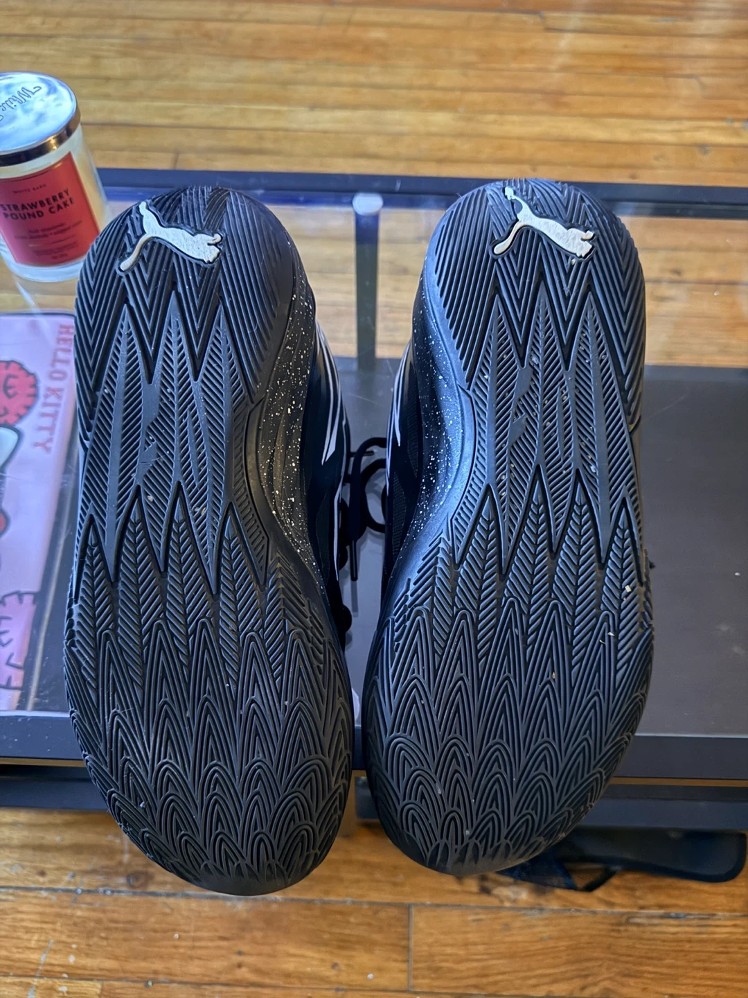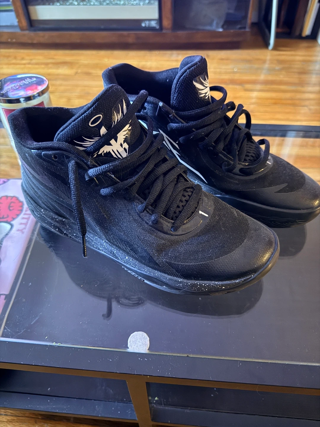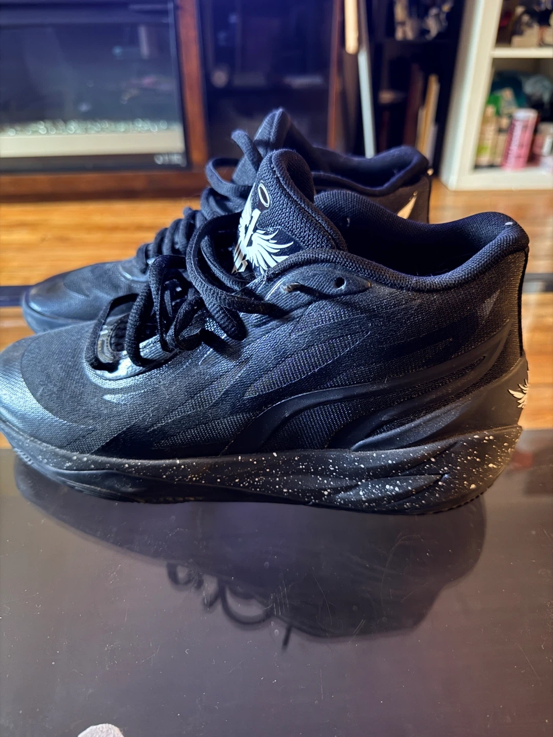 Selling a pair of Puma M.E.L.O. basketball shoes! They're in good condition and ready for the court or casual wear. The shoes feature a unique design with the M.E.L.O. logo.