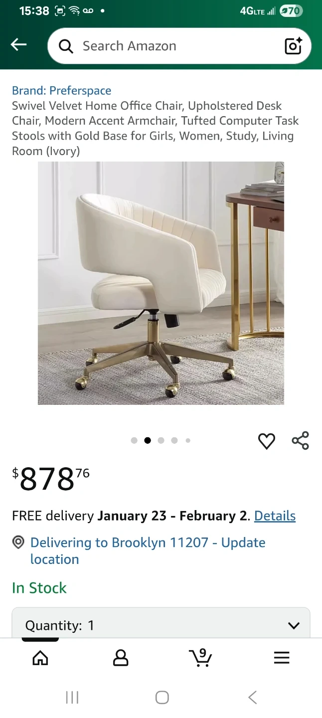 Dive deeper in AI Mode It's an upholstered desk chair with a modern armchair design. The chair features tufted computer task stools and a gold base. Perfect for girls, women, study, or living room. Retails for $878