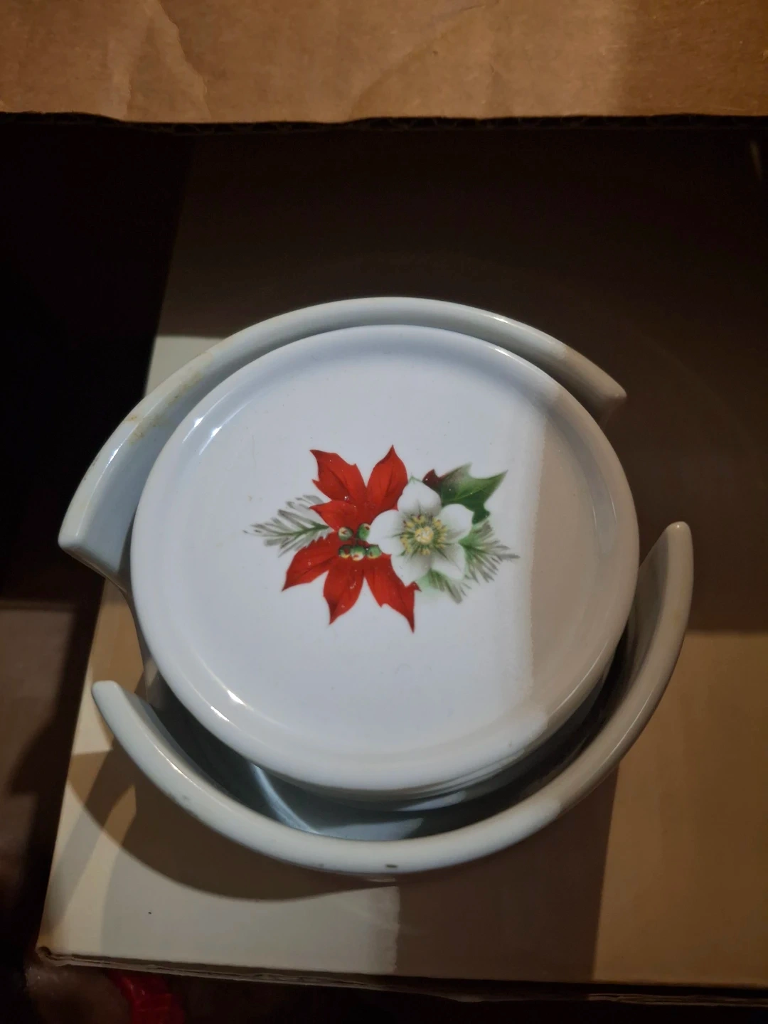 Vintage Poinsettia Coasters with Holder