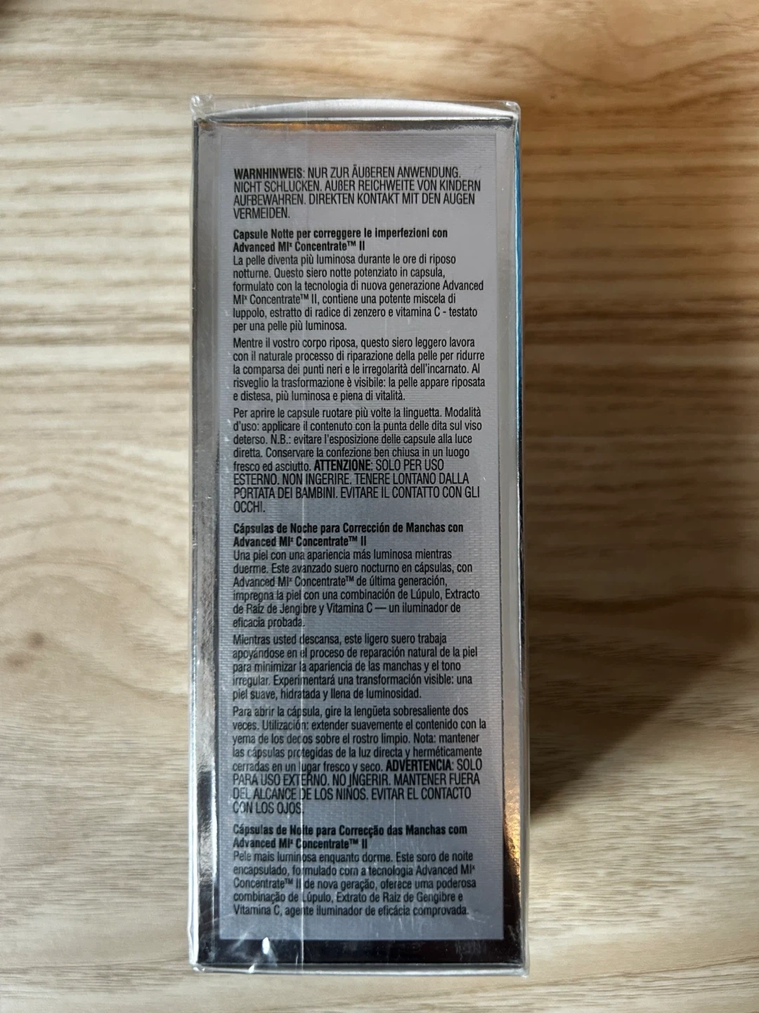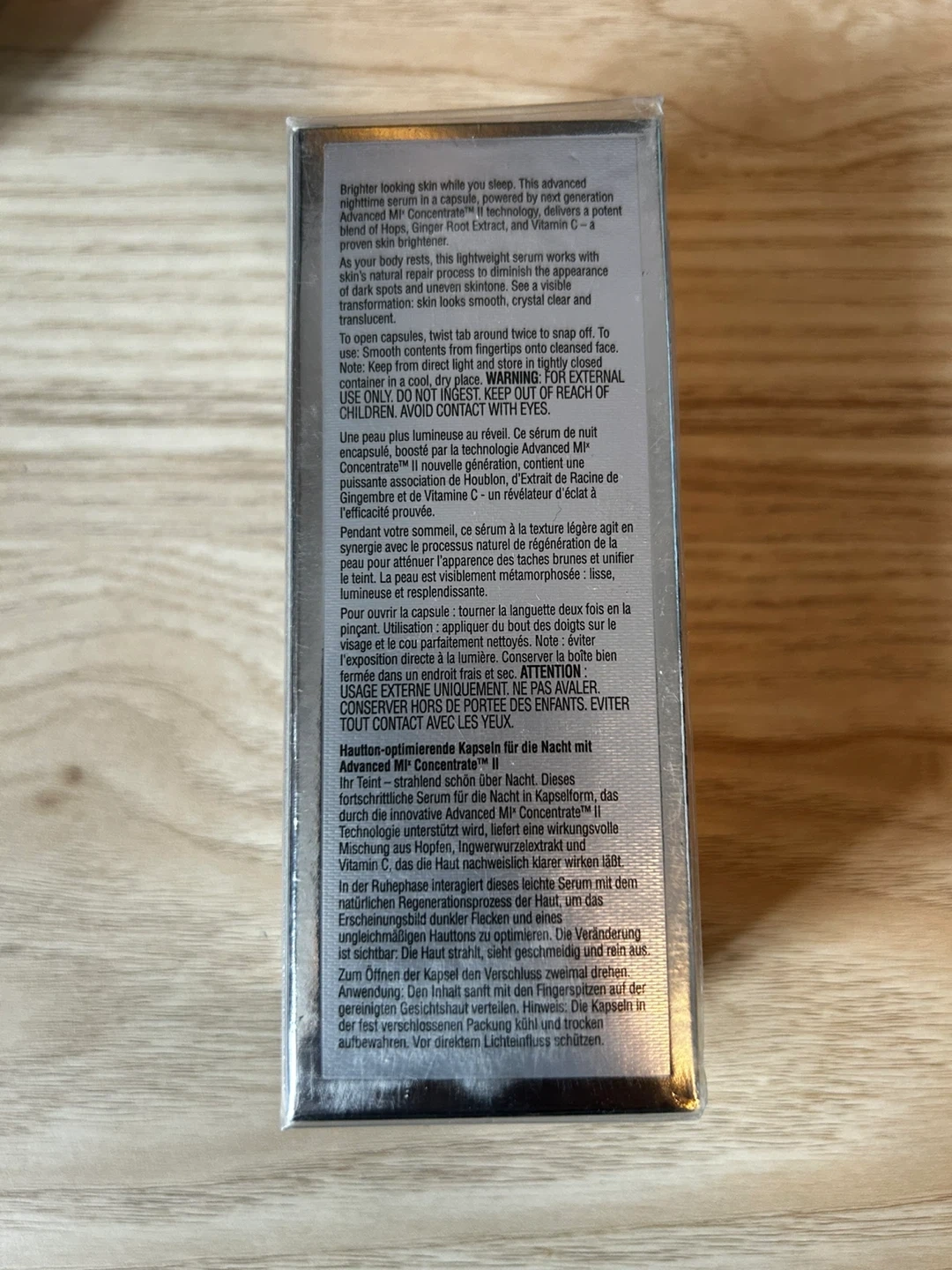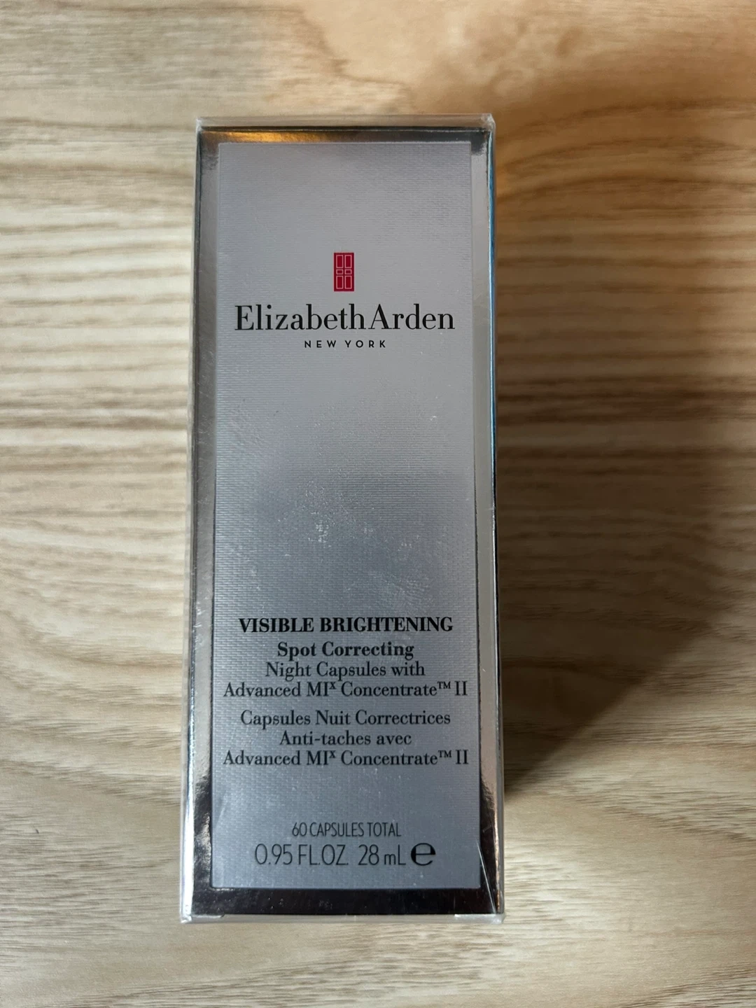 Brand new Elizabeth Arden Visible Brightening Night Capsules with Advanced MI Concentrate II. These capsules are designed to brighten skin while you sleep. Each capsule contains a lightweight serum that works with your skin's natural repair process to diminish the appearance of dark spots, leaving skin looking smooth, crystal clear and brightened. Contains 60 capsules total, 0.95 FL OZ / 28 mL