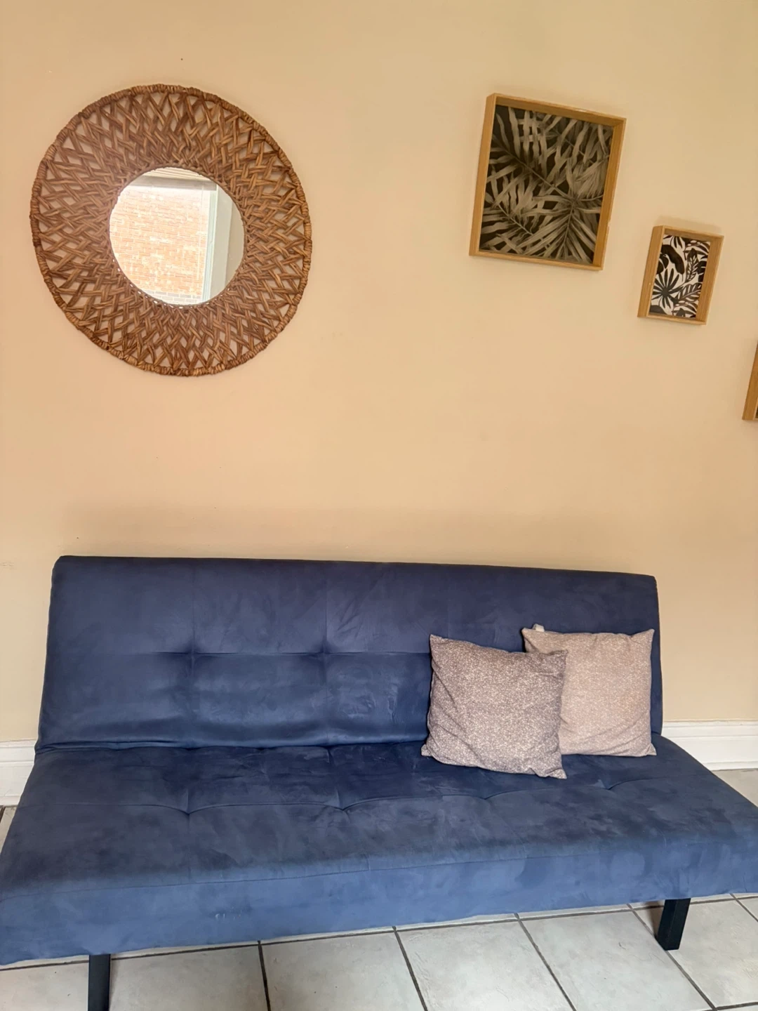 Selling a comfy blue futon sofa bed! It's in great shape and perfect for adding extra seating or a sleeping space to your home