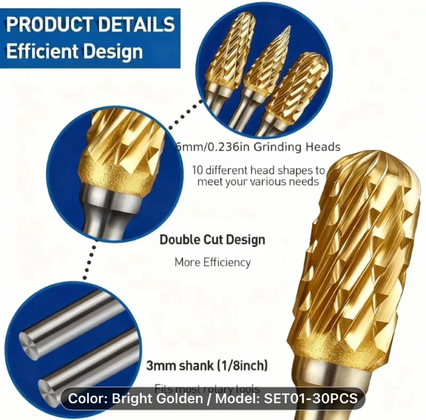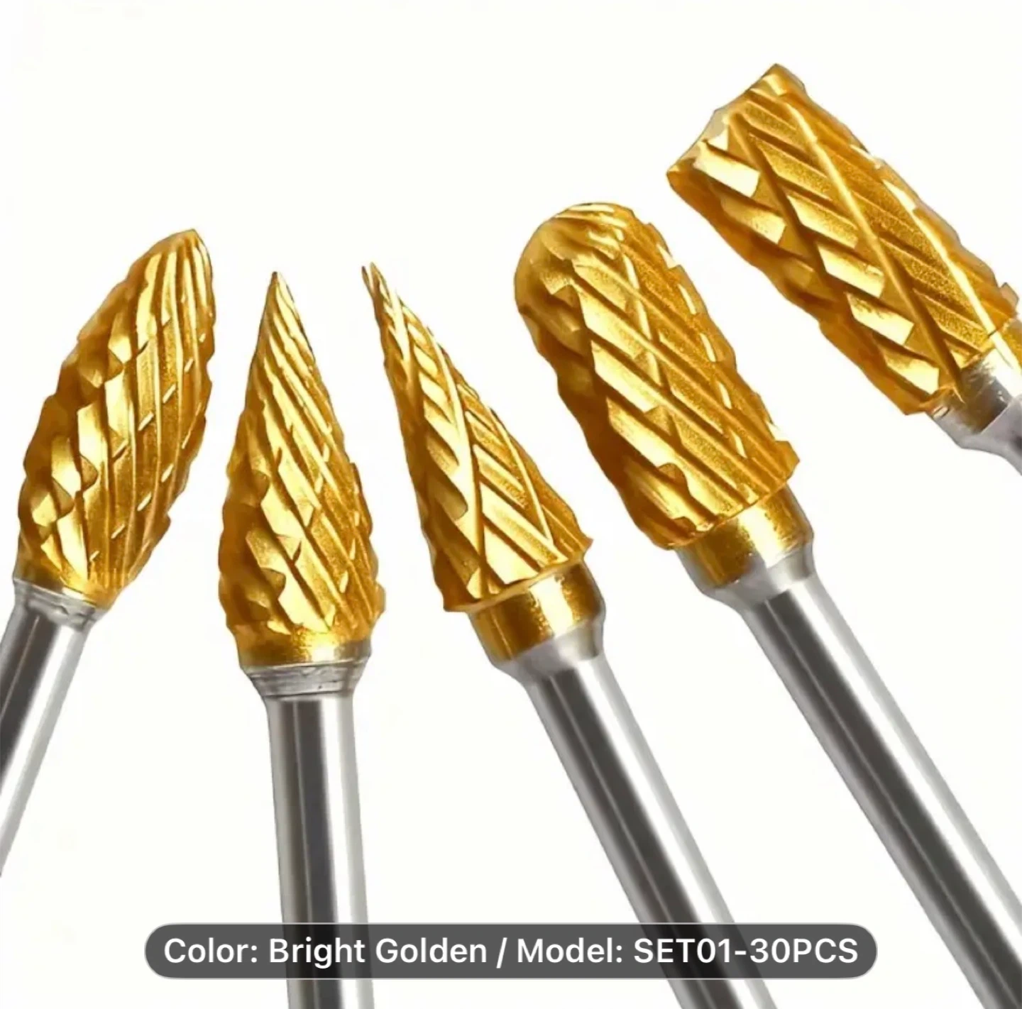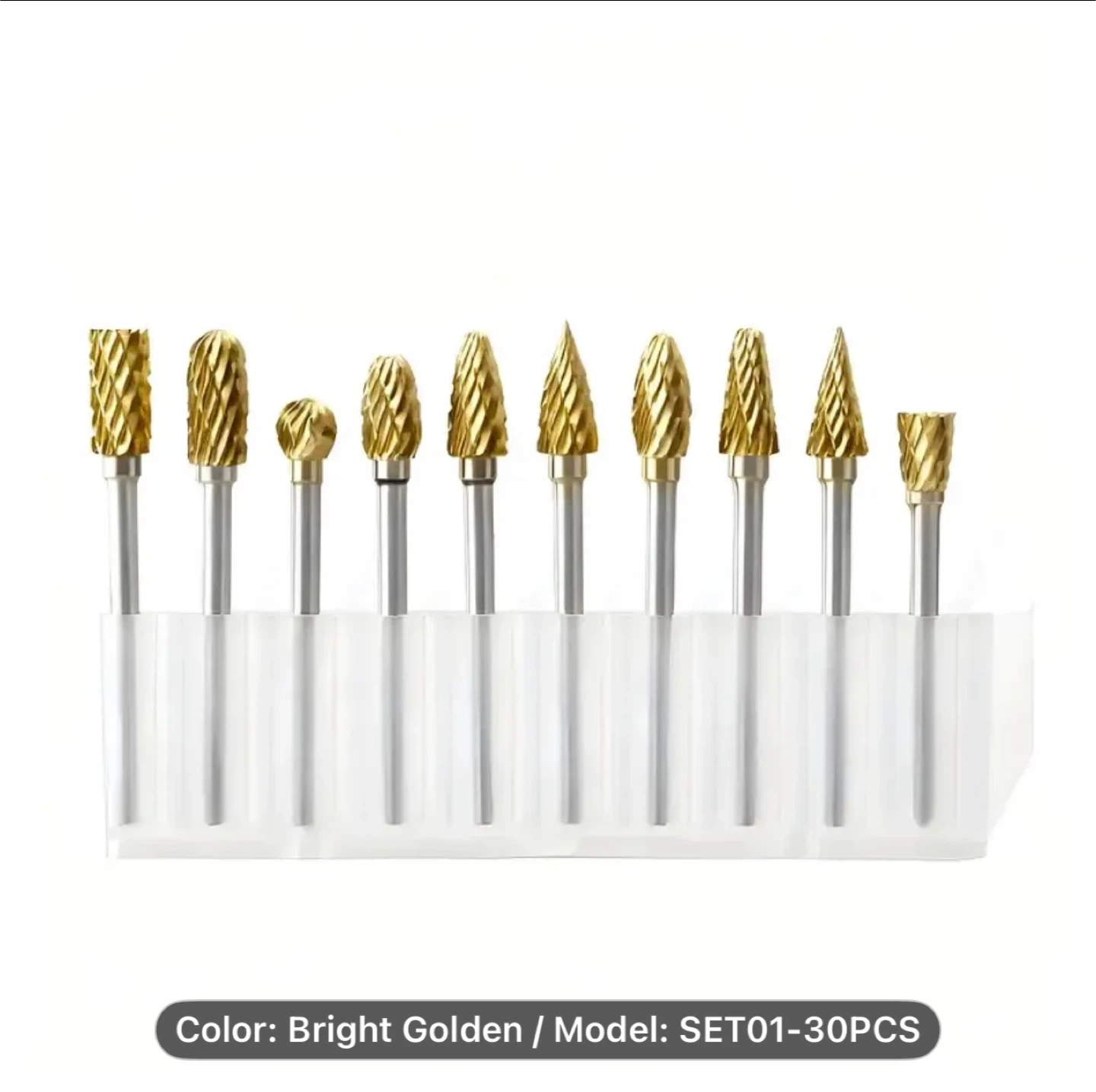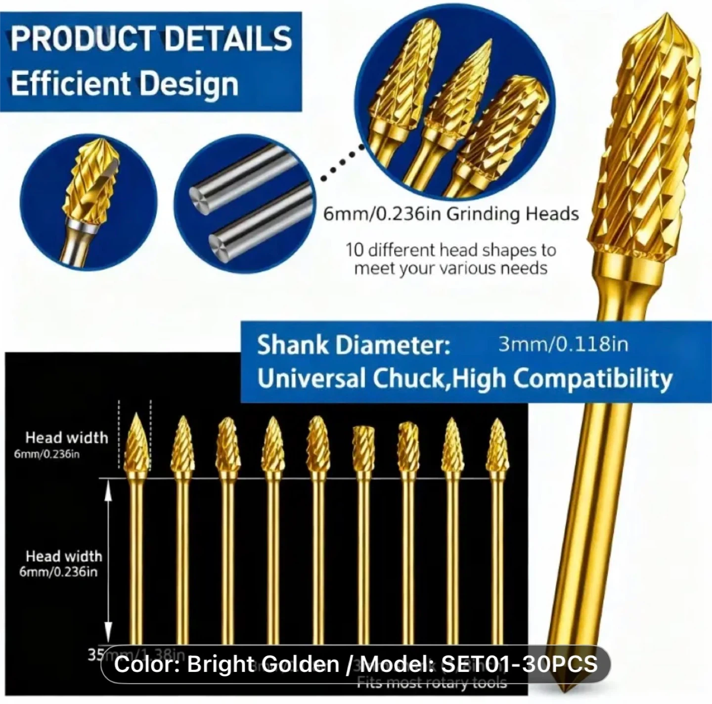 10pcs High-Speed Titanium Rotary Burr Kit | Carbide-Grade Double Cut Bits with 1/8" Shank for Metal, Wood, Stone, Tile | Diamond Coated, Heavy-Duty HSS Tools | Professional Drill Accessories