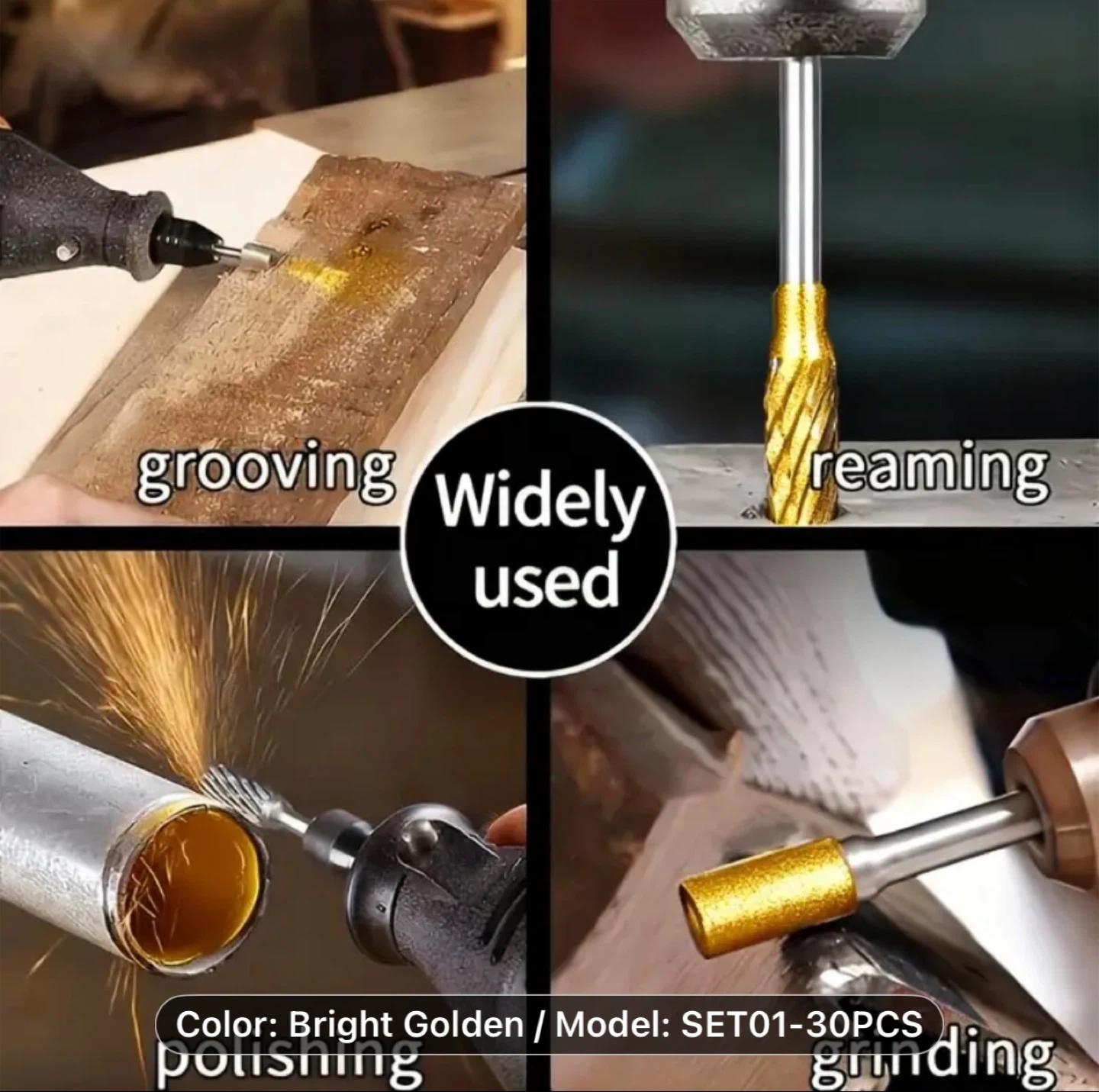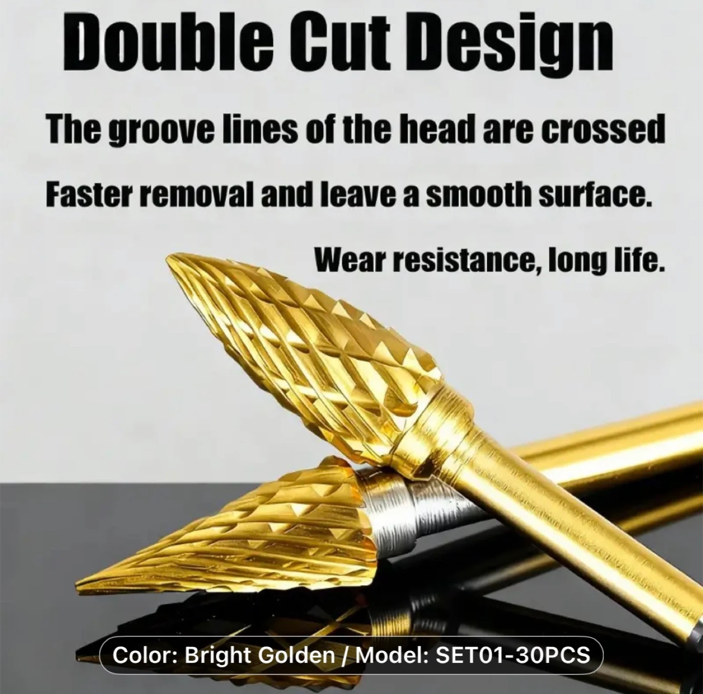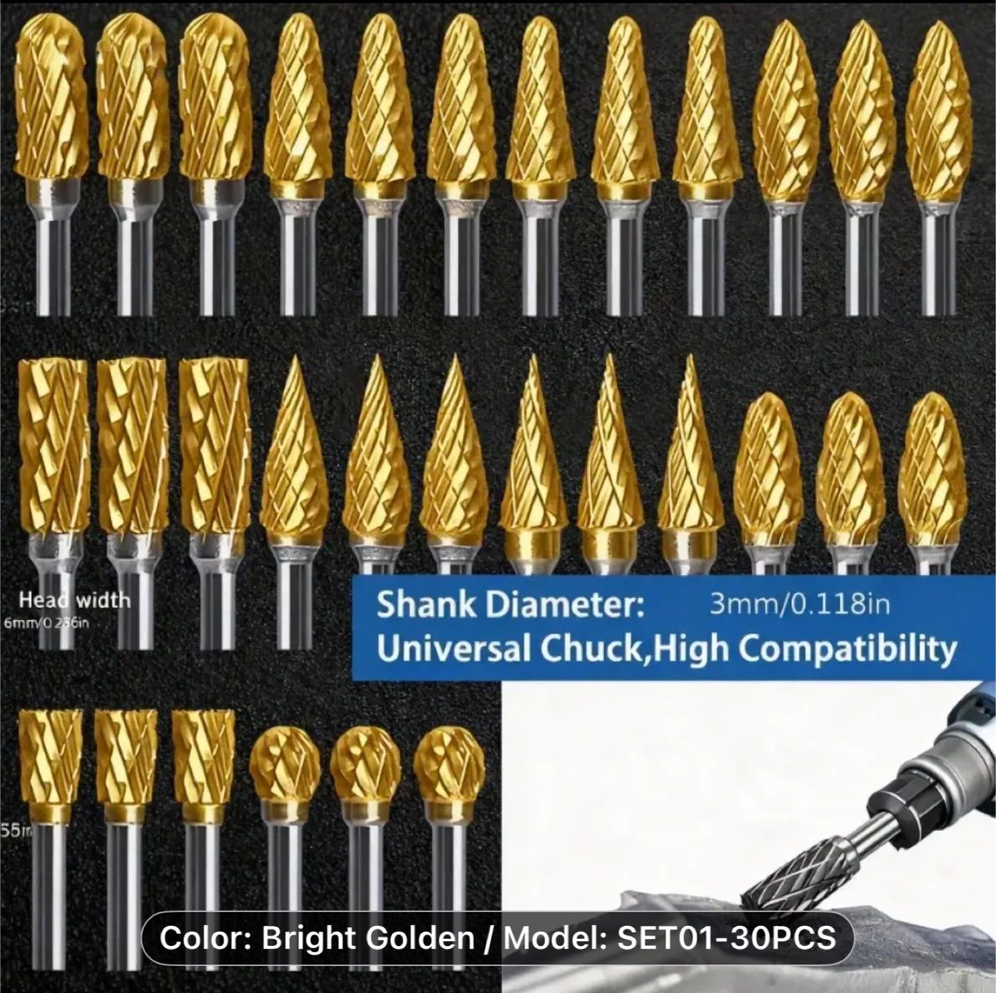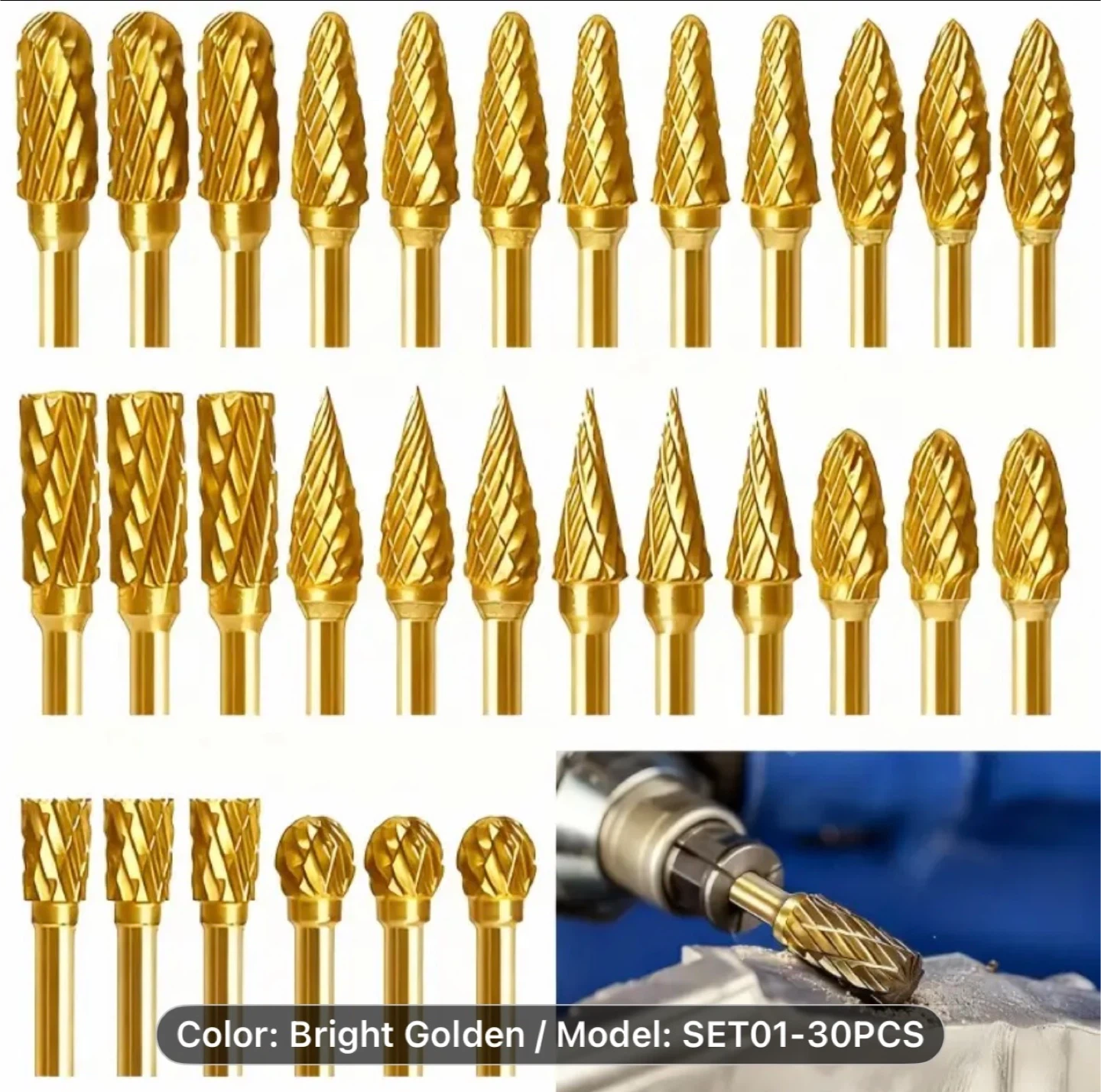 10pcs High-Speed Titanium Rotary Burr Kit | Carbide-Grade Double Cut Bits with 1/8" Shank for Metal, Wood, Stone, Tile | Diamond Coated, Heavy-Duty HSS Tools | Professional Drill Accessories