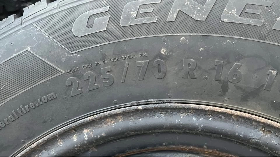 The tires are General Altimax Arctic tires sized at 225/70R16, tires were driven for 2 winter seasons, stored for 1
