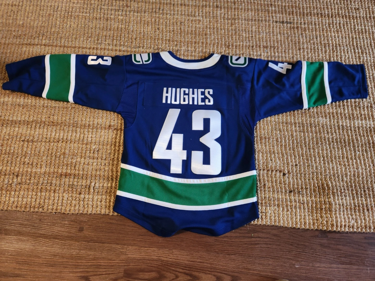 Selling a Vancouver Canucks jersey with Quinn Hughes' name and number (43) on the back! It's a Youth size S/M and in great condition. Perfect for any young Canucks fan!